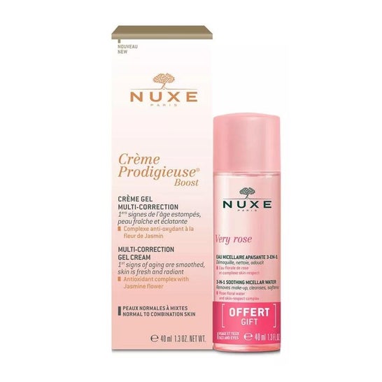 - Nuxe Prodigieuse Boost Gel Crema Multi-Corrección 40 ml: AQUA/WATER, ALCOHOL DENAT., GLYCERIN, PHENYL TRIMETHICONE, HYDROXYETHYL ACRYLATE/SODIUM ACRYLOYLDIMETHYL TAURATE COPOLYMER, PROPYLHEPTYL CAPRYLATE, SILICA, PARFUM/FRAGRANCE, PHENOXYETHANOL, ETHYLHEXYLGLYCERIN, ACRYLATES/C10-30 ALKYL ACRYLATE CROSSPOLYMER, RIBOSE, SODIUM GLUCONATE, XANTHAN GUM, BUTYLENE GLYCOL, SODIUM HYALURONATE, POLYSORBATE 60, SORBITAN ISOSTEARATE, PENTYLENE GLYCOL, JASMINUM OFFICINALE (JASMINE) FLOWER EXTRACT, SODIUM HYDROXIDE, FAEX EXTRACT/YEAST EXTRACT, MICA, CI 77491/IRON OXIDES, CALENDULA OFFICINALIS FLOWER EXTRACT, TOCOPHEROL, BENZYL SALICYLATE, LINALOOL, CITRONELLOL, ALPHA-ISOMETHYL IONONE, GERANIOL [N3904/A].