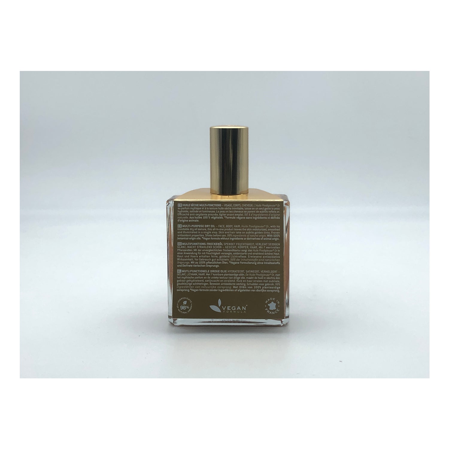 Nuxe Huile Prodigieuse Or es un aceite seco multifunciones que produce un efecto luminoso sobre rostro, cuerpo y cabello. Ayuda a lucir el pelo más suave y brillante, y la piel más iluminada con sutiles reflejos dorados.
