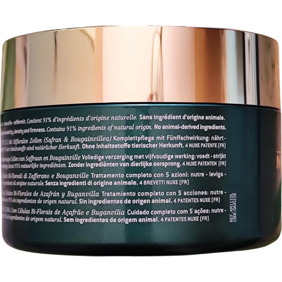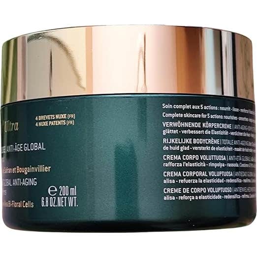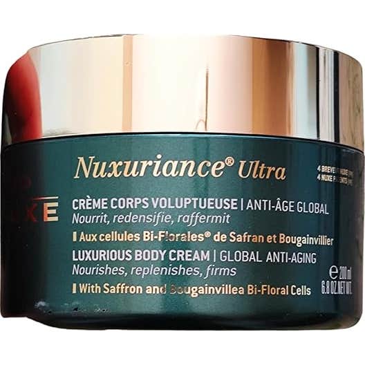Nuxe Nuxuriance Ultra Crema Corporal Voluptuosa 200ml es una crema corporal reafirmante y antiedad que actúa sobre los cinco signos principales del envejecimiento cutáneo: suavidad, densidad, firmeza, elasticidad y nutrición.