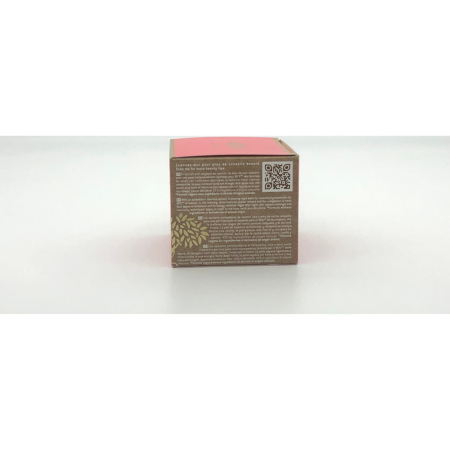 Formulado con extracto de flor de jazmín y aceite de macadamia, entre otros ingredientes, aporta hidratación y suavidad sin dejar sensación grasa, respetando el equilibrio natural de la piel. Contiene un 92% de ingredientes naturales, y ofrece una textura muy agradable.