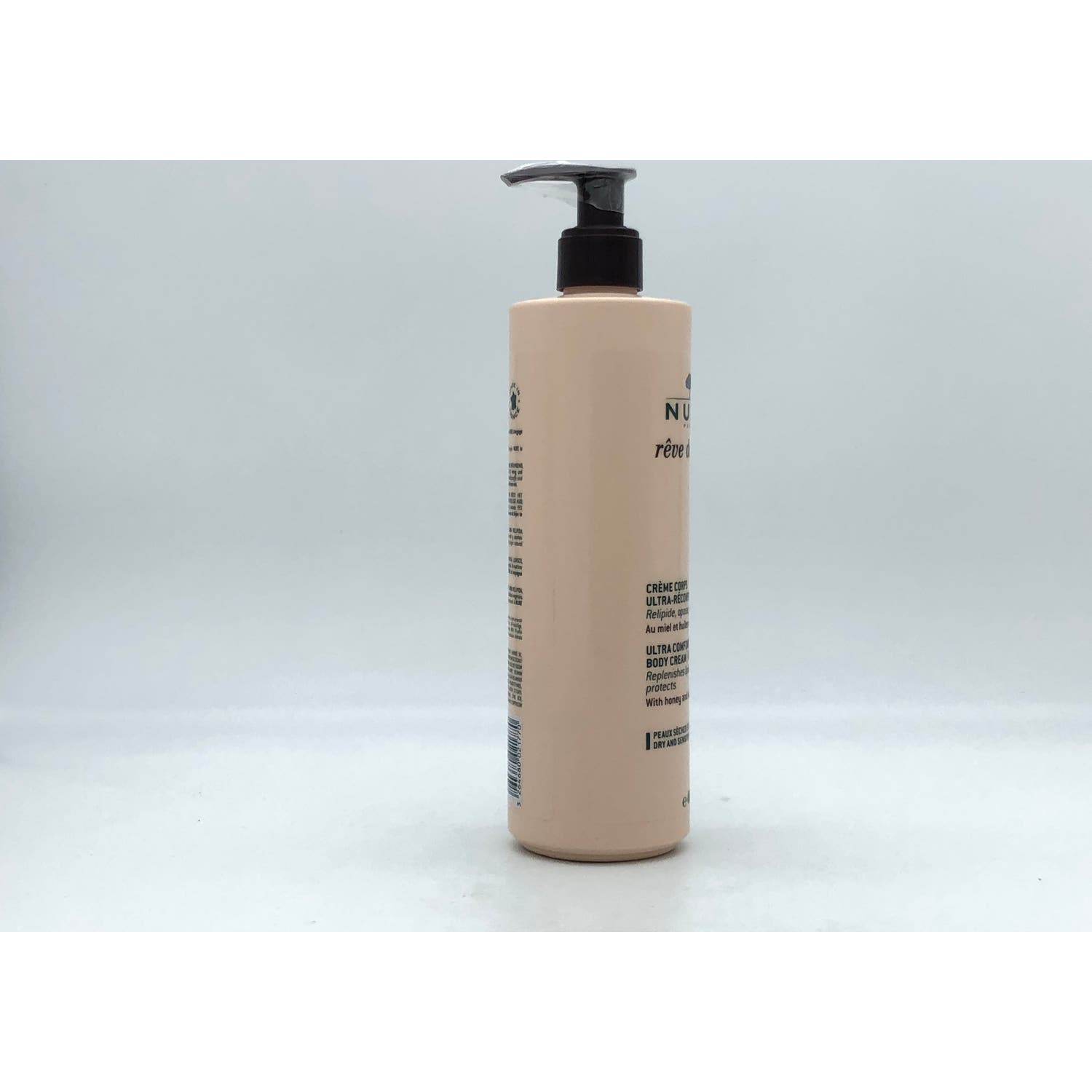 Nuxe Rêve de Miel Crema Corporal Ultra-Reconfortante 48h 400ml es una crema que combina la miel con aceites vegetales para ayudar a calmar y proteger la piel de agresiones externas (como el viento, frío, exceso de calor, etc.). Indicada principalmente para pieles secas y sensibles.
