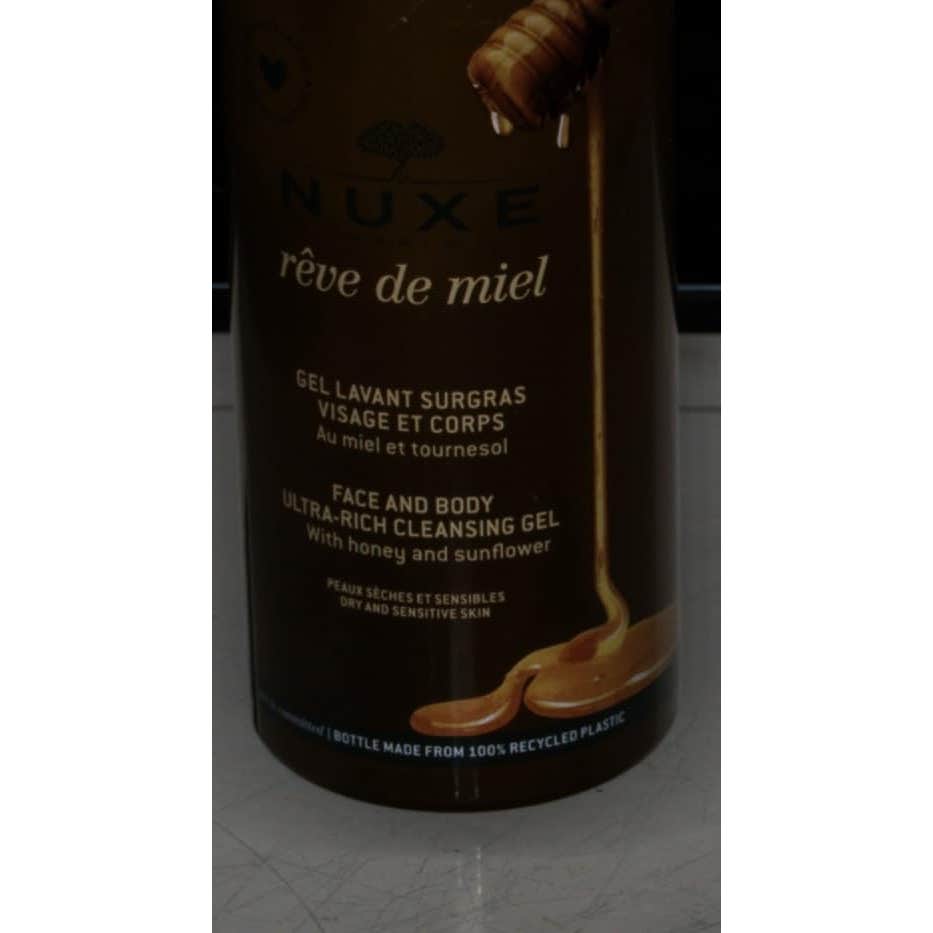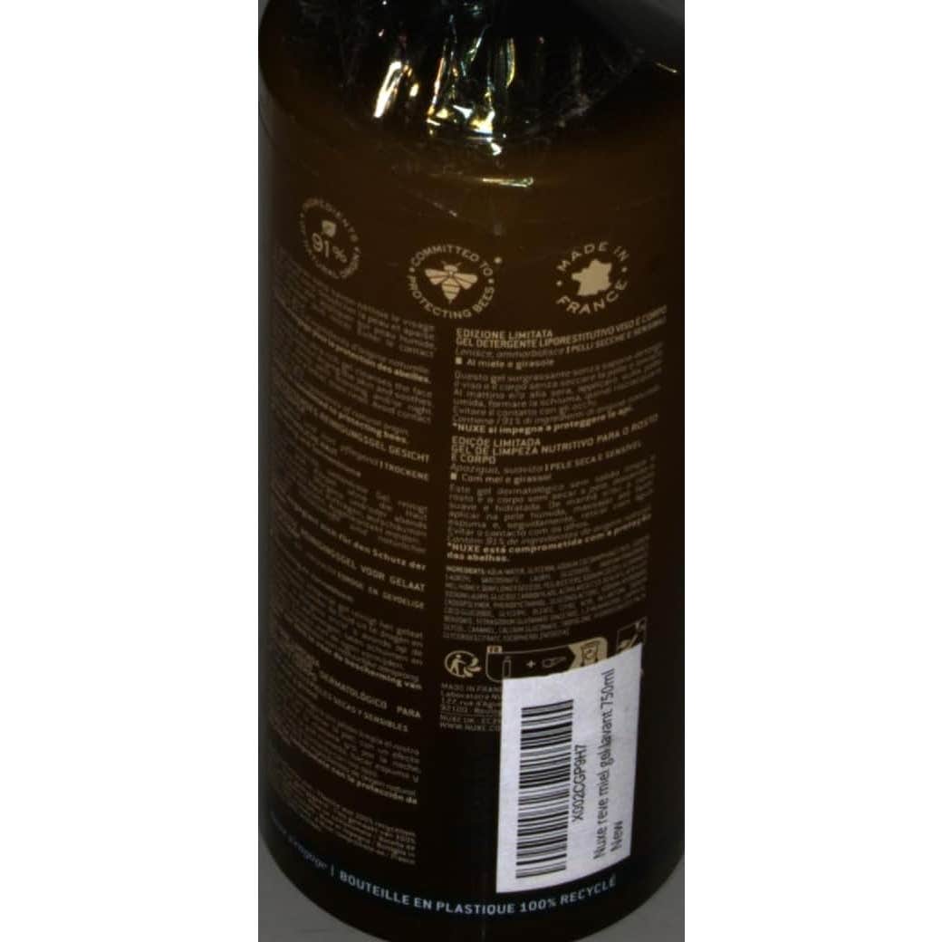 Gel limpiador sobregraso con extracto de miel de Nuxe. Gel limpiador sobregraso sin jabón con miel y girasol que limpia el rostro y el cuerpo sin resecar la piel y la calma. La fórmula contiene 92% de los ingredientes son de origen natural. Fabricado en Francia. La rica composición facilita la limpieza facial y corporal. Para pieles secas y sensibles.