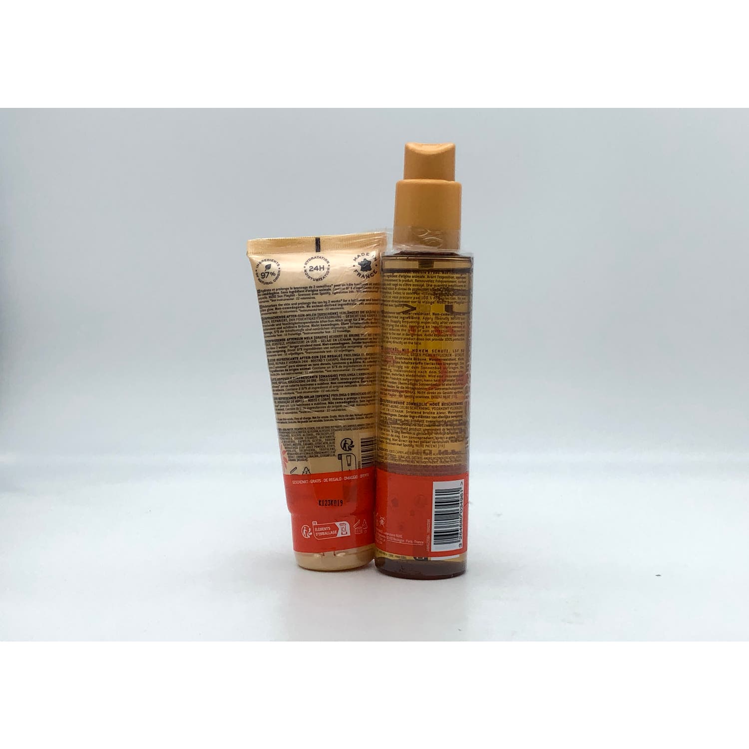 Nuxe Sun Aceite Solar Bronceador SPF50 150ml + Leche Refrescante After Sun 100ml es un duplo de productos que contribuyen a cuidar la piel del rostro y cuerpo. Contiene:
