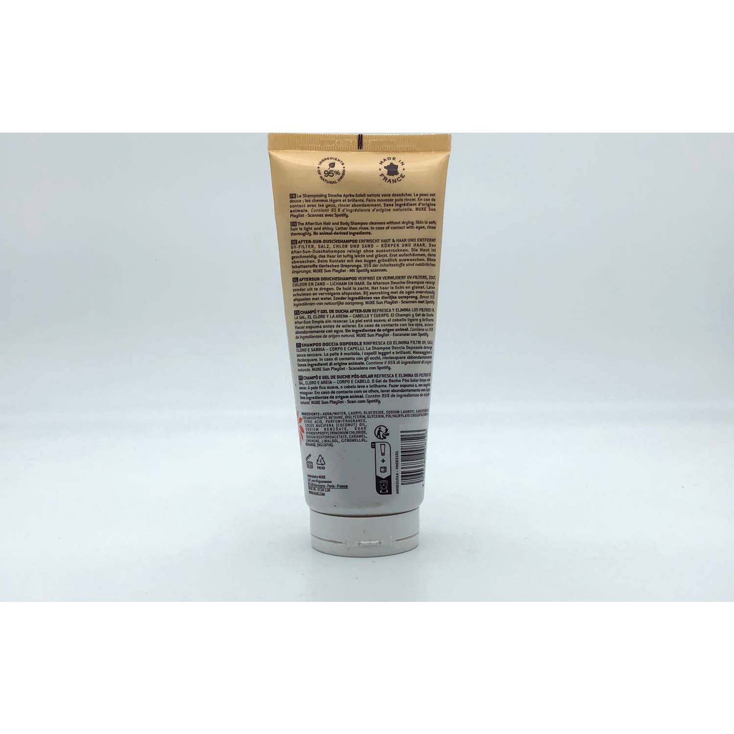 Nuxe Sun Champú-Gel de Ducha After Sun 200ml es un champú que limpia suavemente a la vez que permite eliminar los restos de protección solar, cloro, arena y sal de la piel y el cabello.