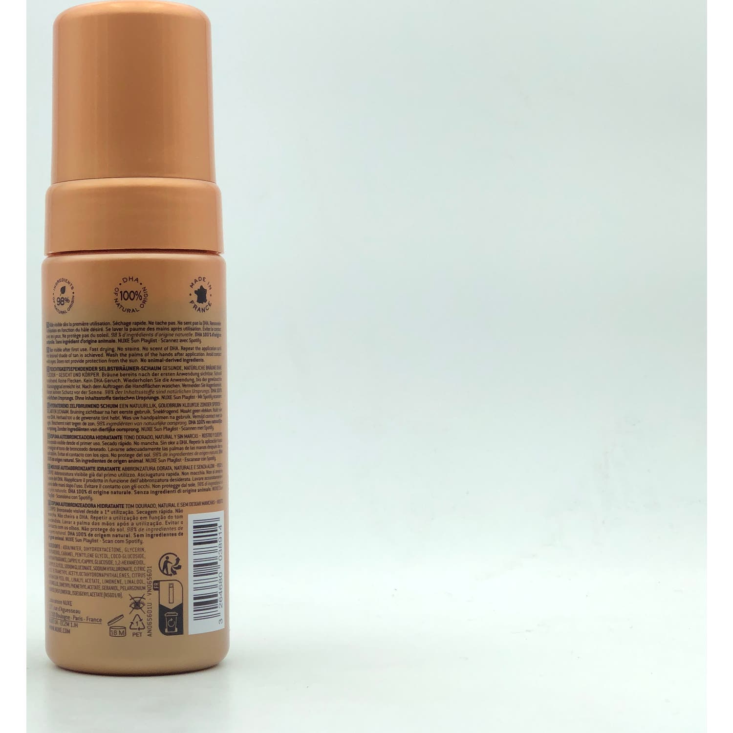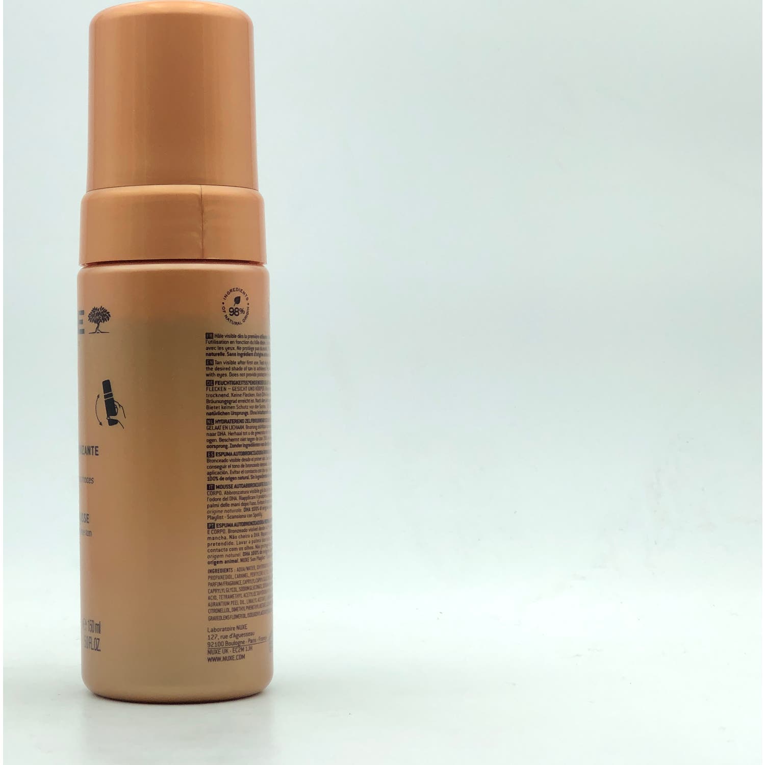 Nuxe Sun Mousse Autobronceadora Hidratante 150ml es un autobronceador en espuma que proporciona un tono dorado natural, sin manchas.