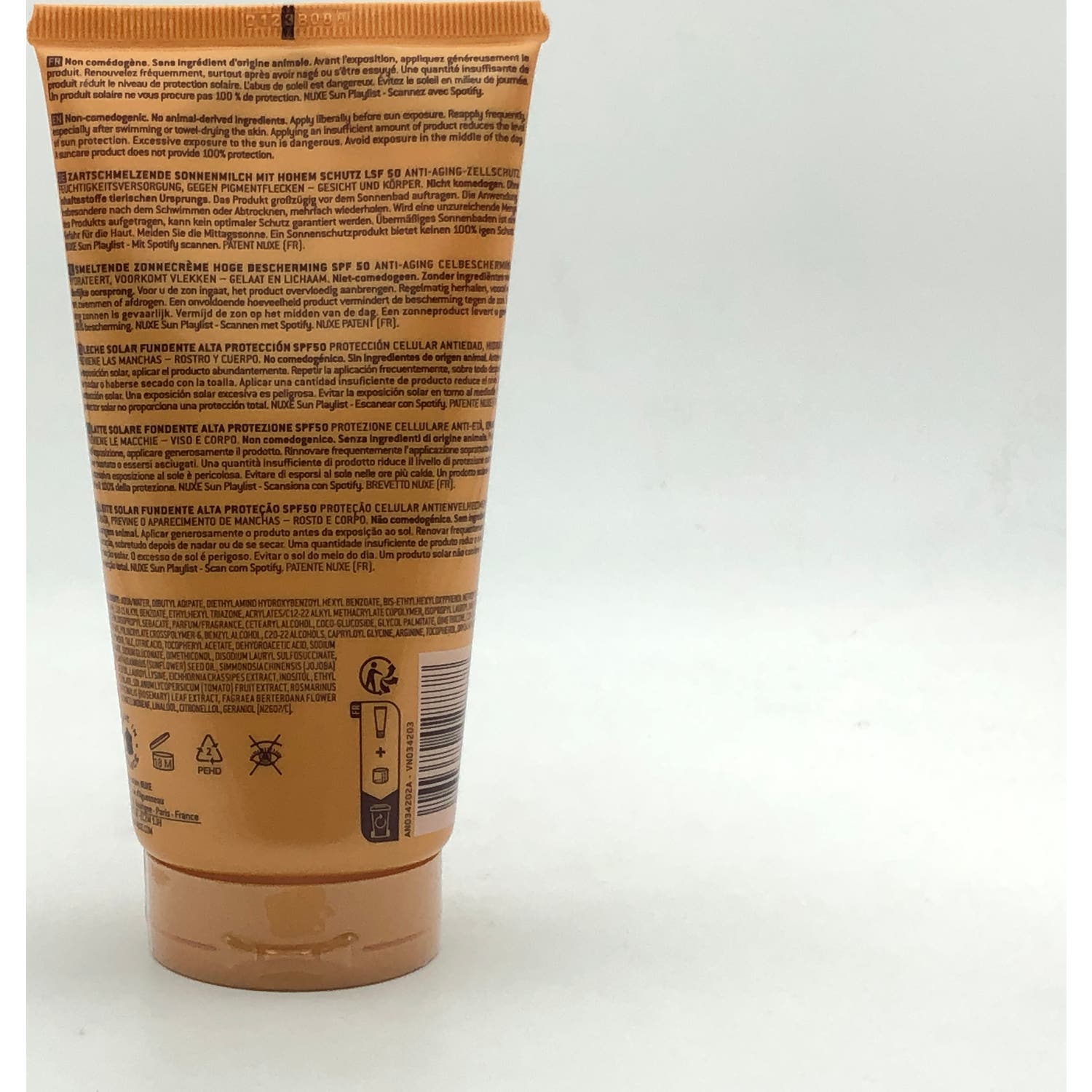 Su fórmula fotoestable permite penetrar fácilmente sin dejar una película blanca. Además, es resistente al agua, no comedogénica y presenta una fragancia fresca compuesta por vainilla, flores de tiaré y naranja dulce.