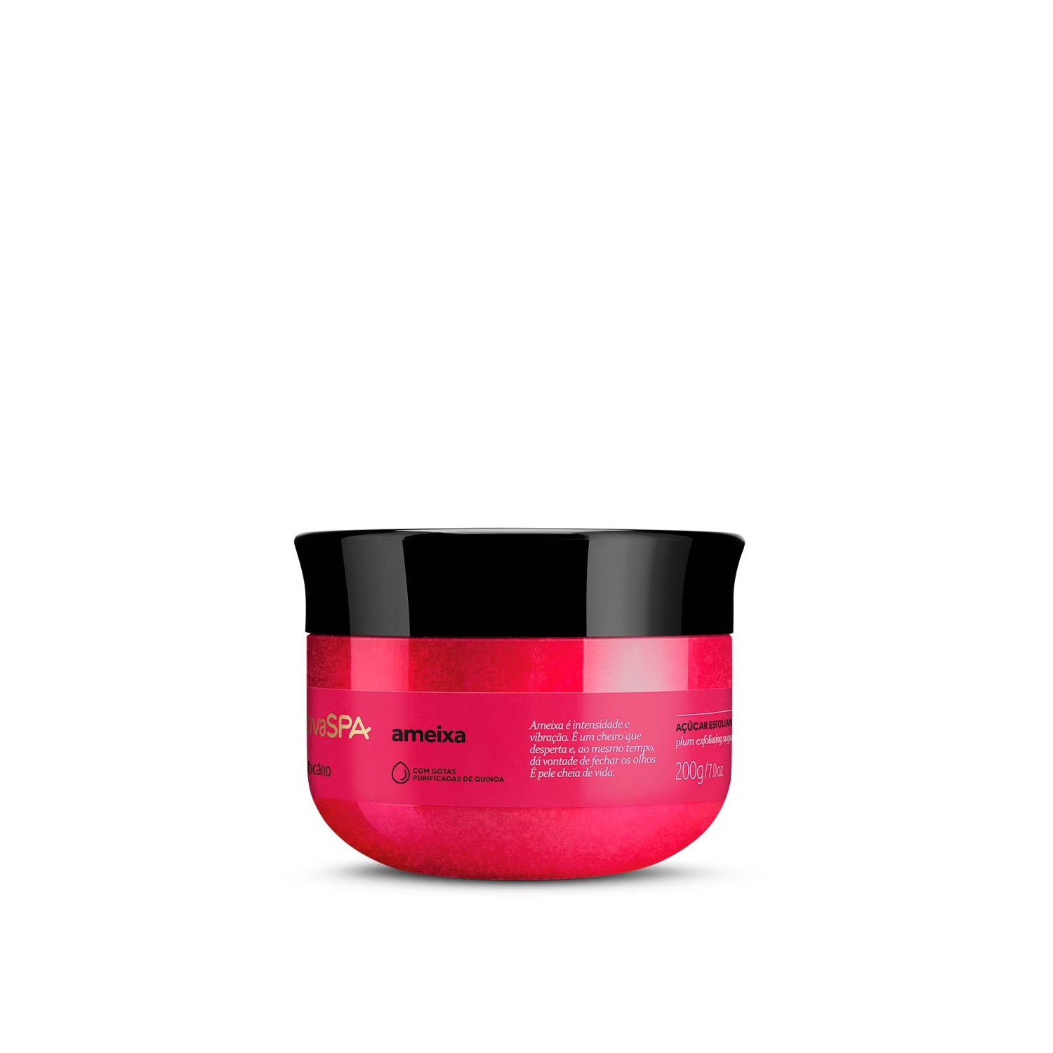 O Boticário Nativa SPA Ameixa Açúcar Esfoliante 200g es ideal para quienes buscan una piel corporal suave, renovada y radiante. Su principal función es exfoliar, eliminando impurezas y células muertas, mientras ofrece el intenso y vibrante aroma de la ameixa.