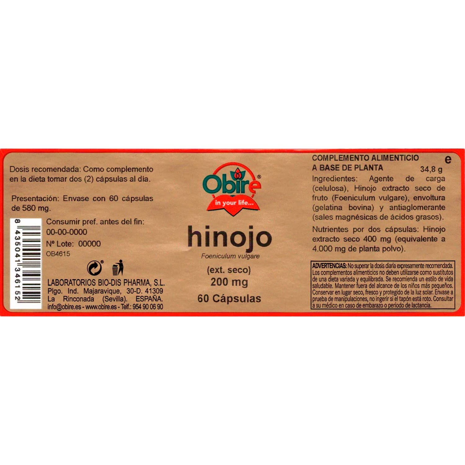 Obire Hinojo es un complemento alimenticio pensado para favorecer la digestión y estimular el apetito. Actúa como tónico estomacal para favorecer la asimilación de los alimentos, especialmente en personas que padecen desórdenes alimenticios.
