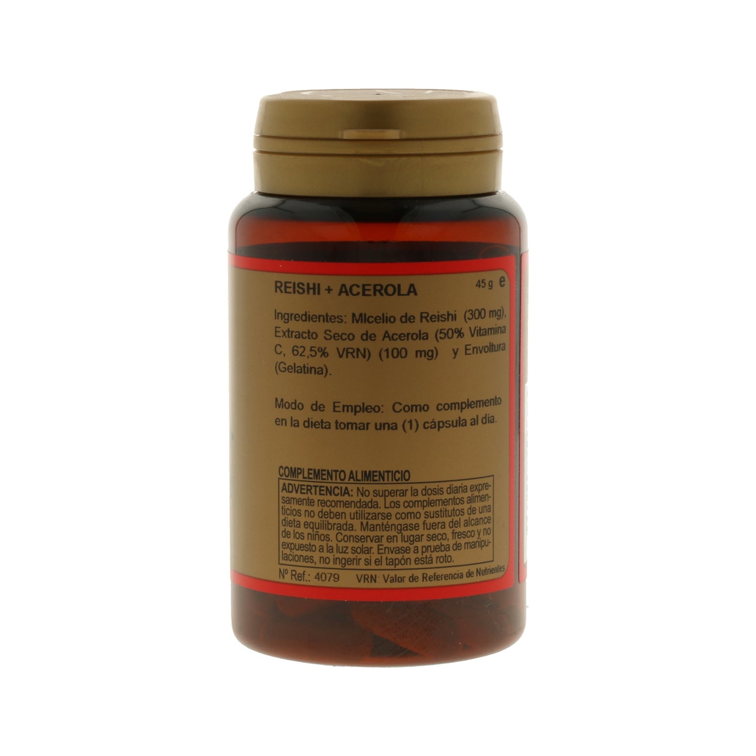 Reishi (Ganoderma lucidum), Acerola extracto seco (Malpighia punicifolia), Cápsula de gelatina dura.