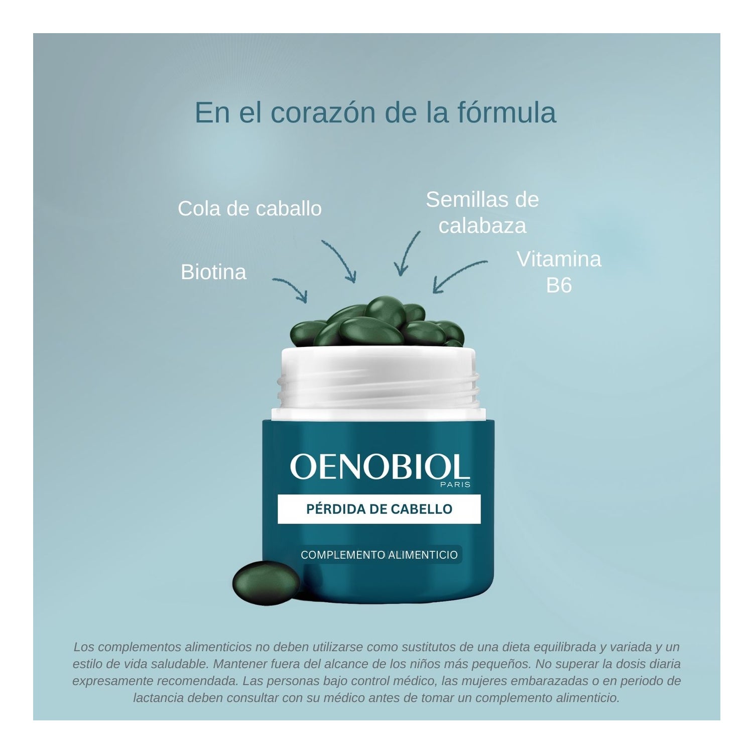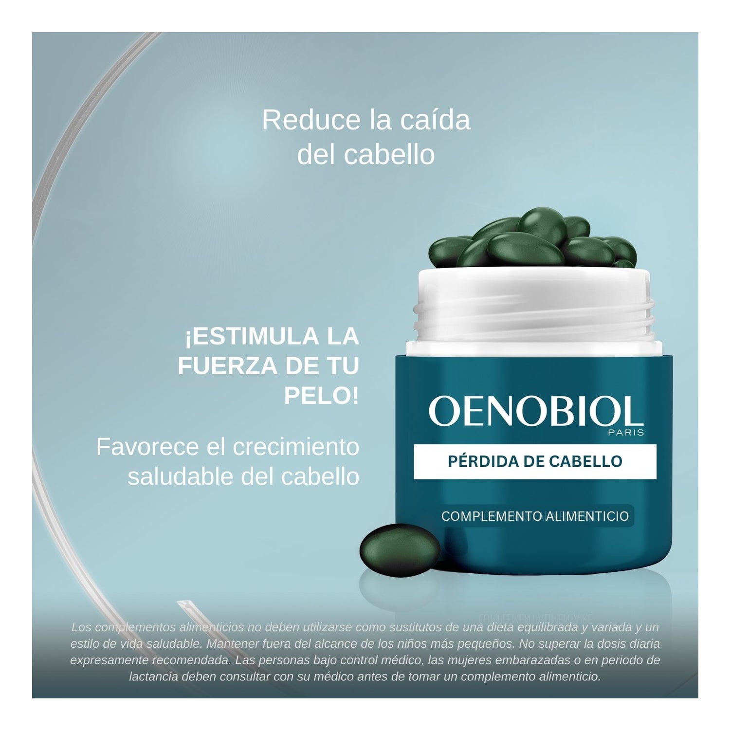 Oenobiol Pérdida de Cabello 3x60caps es un complemento alimenticio que ayuda a estimular el crecimiento y fortalecer la salud de cabello.