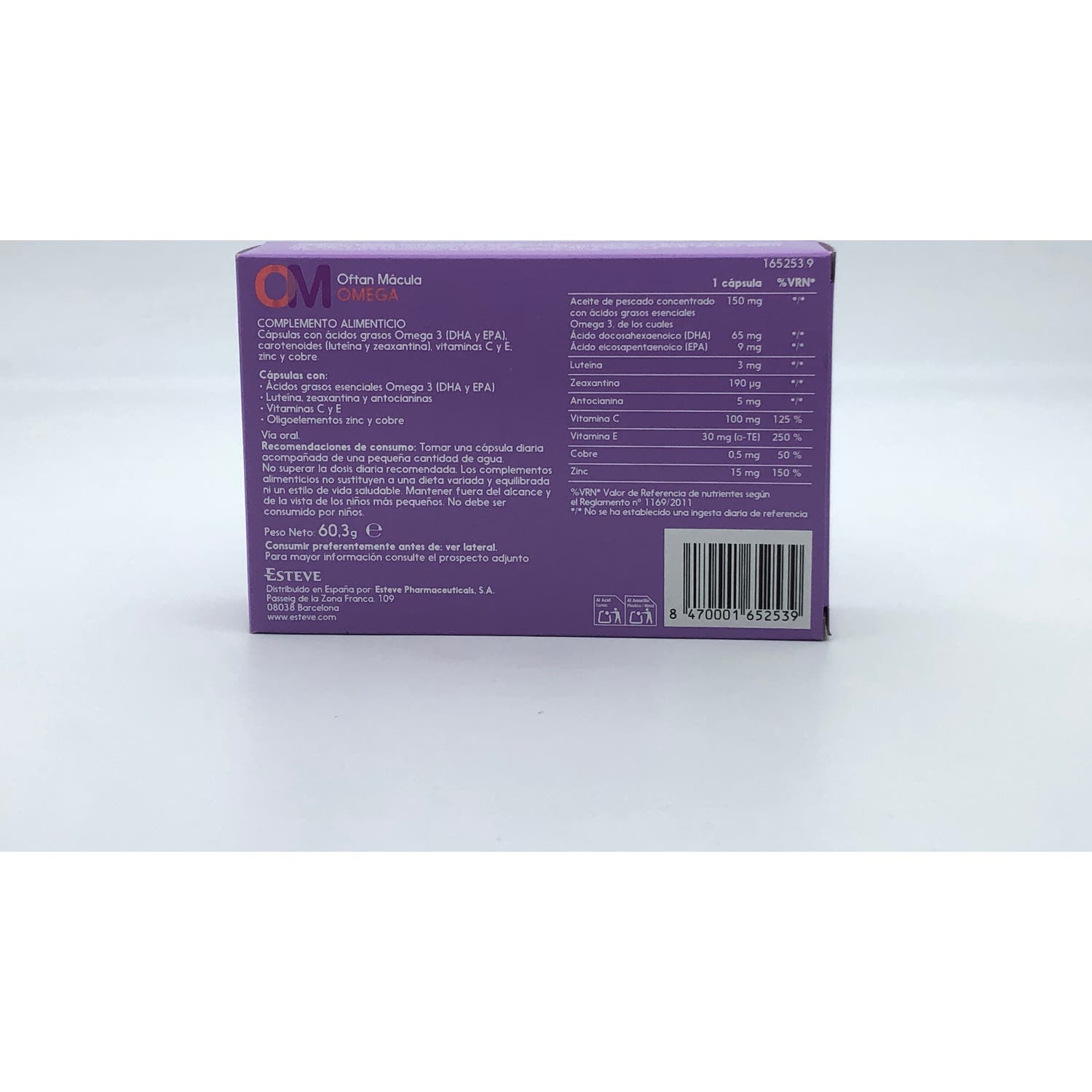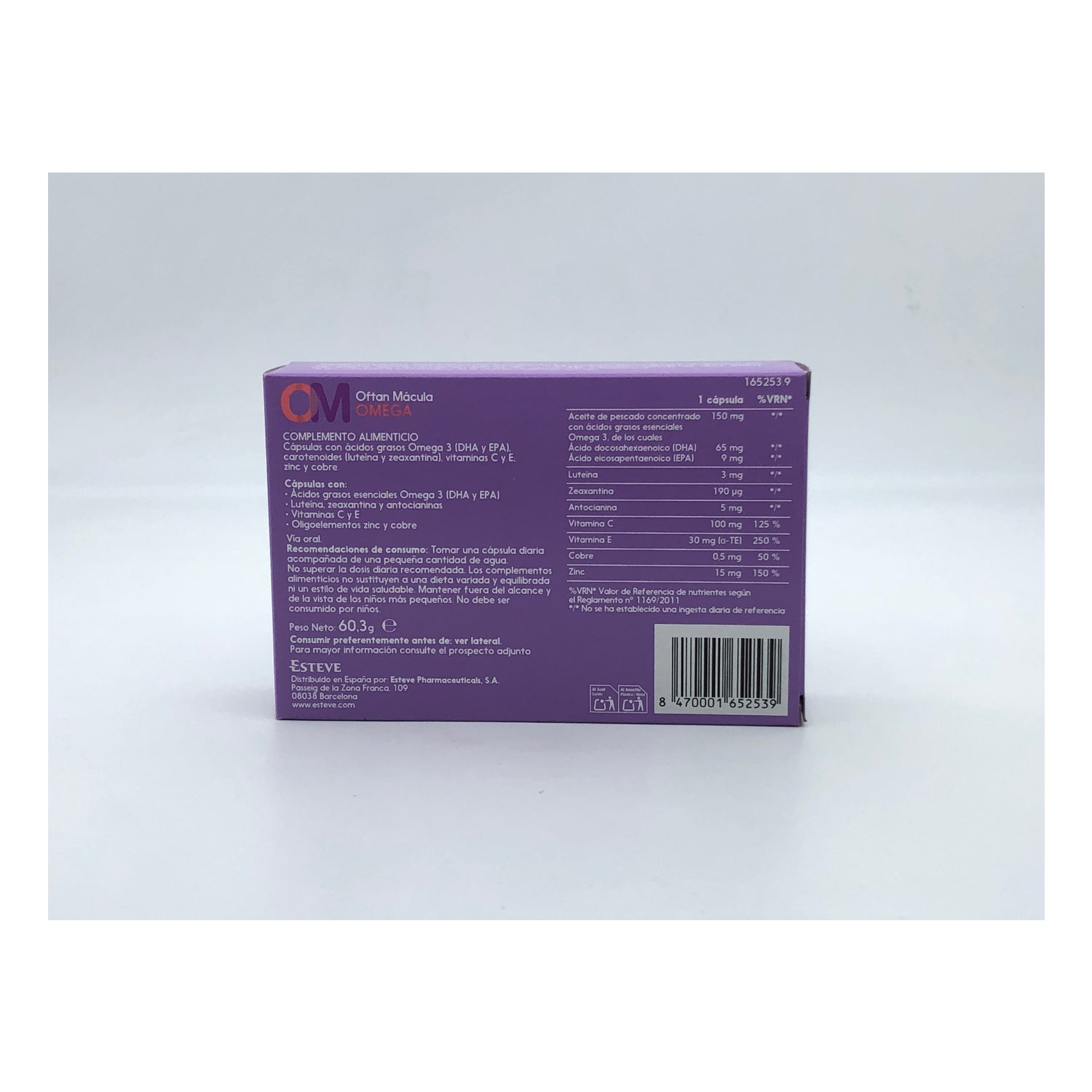 Oftan Mácula Omega 90caps es un complemento alimenticio a base de antioxidantes, vitaminas y minerales fundamentales para el correcto funcionamiento del sistema ocular.