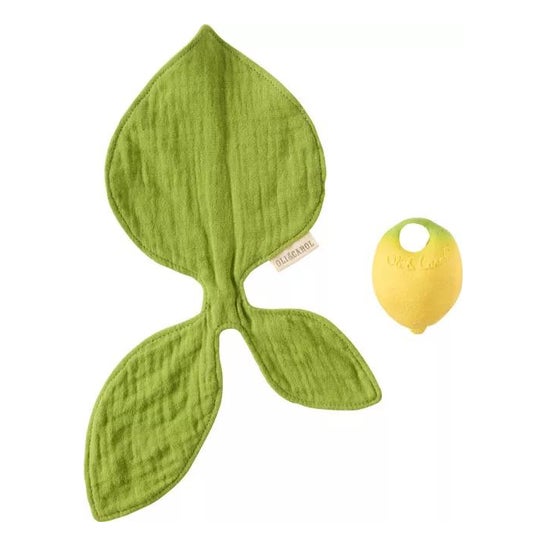 Mordedor confeccionado con caucho 100% natural con forma de limón. Ayuda a calmar las molestias de la dentición y facilita el desarrollo fisiológico del paladar. También contribuye a desinflamar las encías y estimular los sentidos del bebé, mientras facilita el agarre. Incluye una manta extraíble de muselina de doble capa. Es un producto 100% biodegradable y pintado a mano con pigmentos naturales.