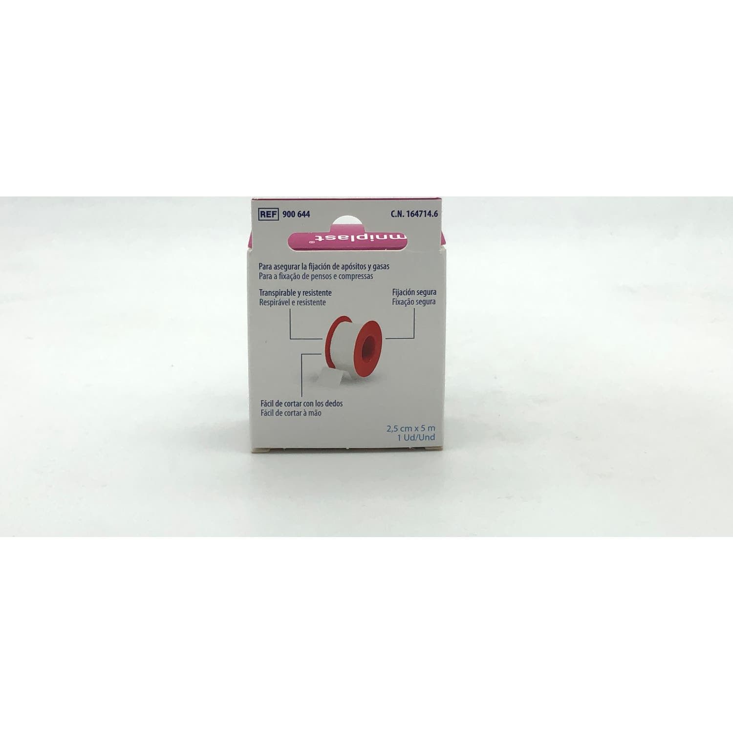 El rollo de esparadrapo de 5 metros de largo por 2,5 cm de ancho está realizado en caucho sintético con el exclusivo tejido Omniplast. Altamente resistente, tiene una gran adaptabilidad. Es apropiado para sujetar apósitos en cualquier parte del cuerpo, incluidas las articulaciones, ya que se adapta bien a las zonas móviles. Se utiliza también para sujetar sondas, cánulas, catéteres y apósitos primarios. Tiene una gran fijación inicial. Es hipoalergénico, transpirable y puede quitarse sin dolor, no dejando residuos de pegamento sobre la piel.