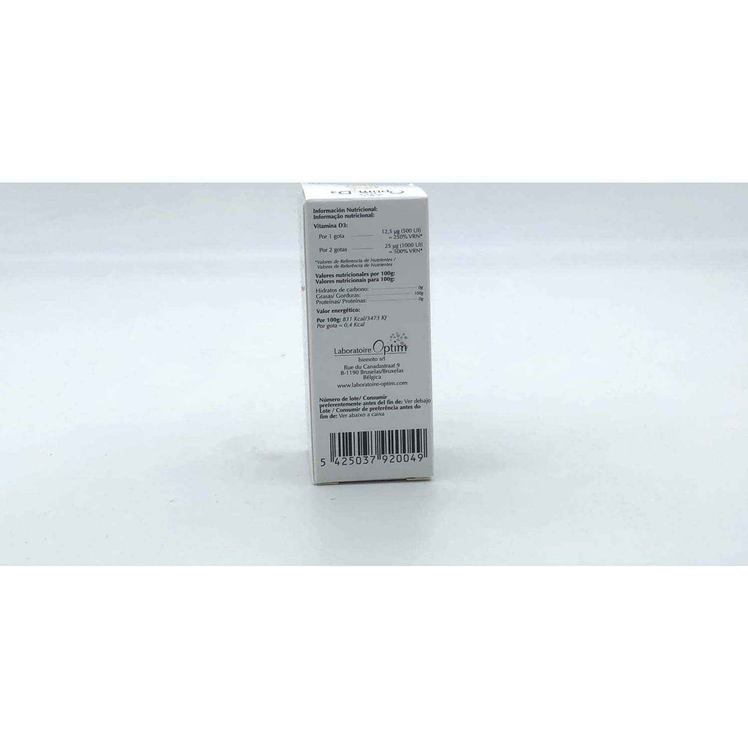 Complemento alimenticio en formato líquido con práctico dosificador de goteo, elaborado a base de vitamina D3, e indicado para ayudar a mantener unos huesos y dientes saludables.
