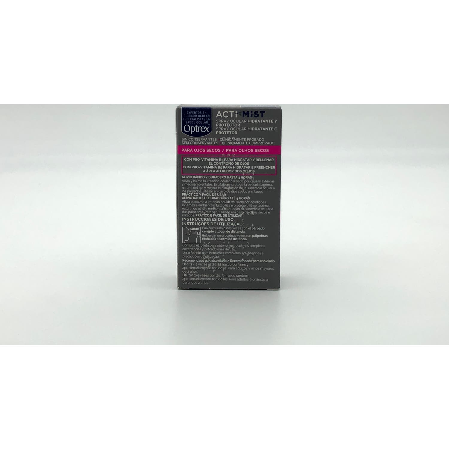 Optrex Actimist 2en1 spray ocular ojos secos e irritados 10ml es una solución hidratante y revitalizadora que ayuda a refrescar e hidratar la piel de alrededor de los ojos. Además, este producto favorece la reparación de la barrera protectora hidratante del ojo.