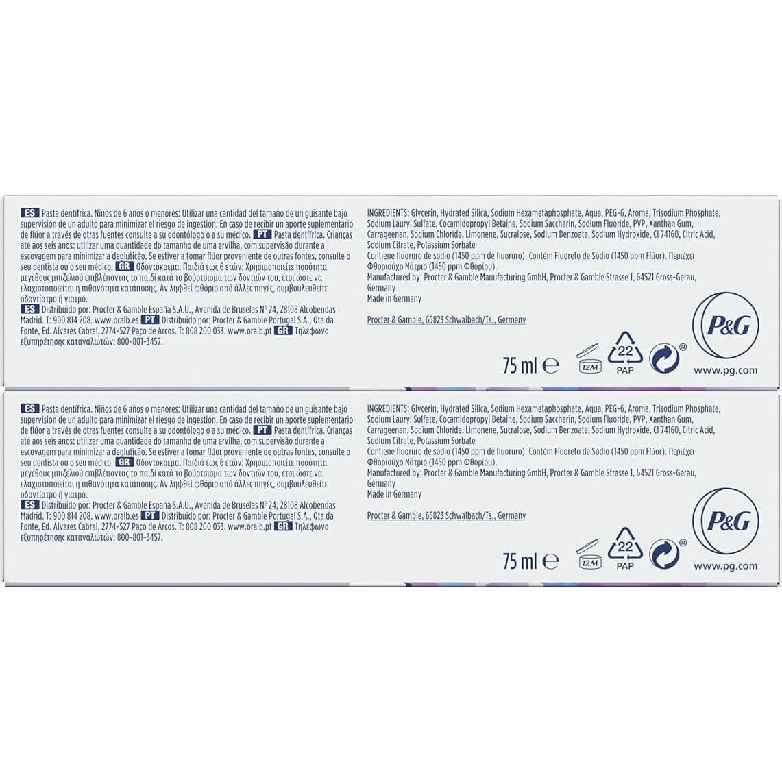 Oral-B 3D White Advanced Luxe Perfection 2x75ml es un dentífrico de uso diario con acción blanqueadora que ofrece una higiene profunda.