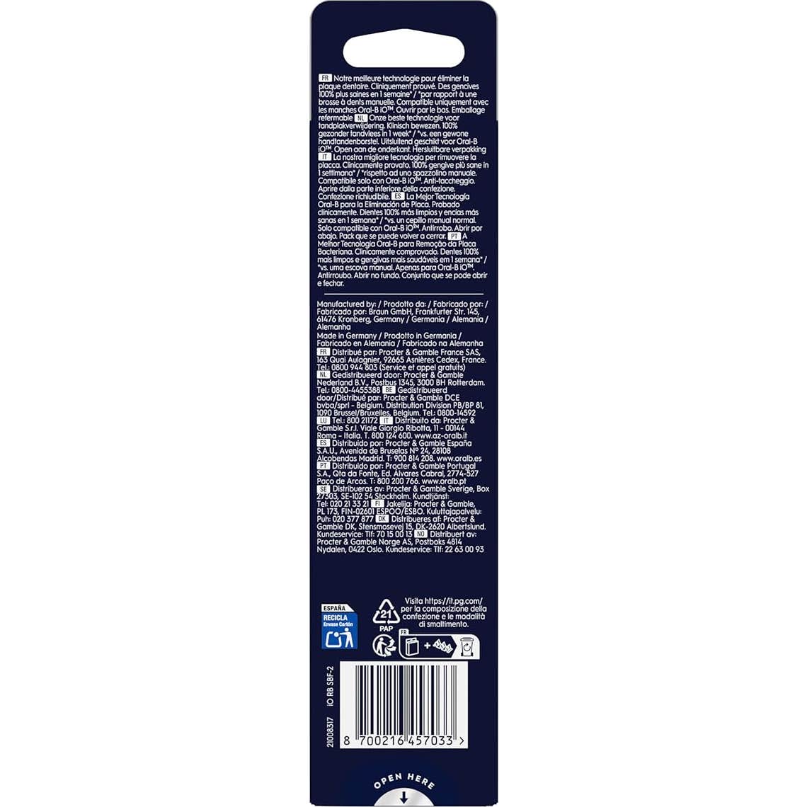 - Compatibilidad: exclusivamente con los cepillos eléctricos Oral-B iO.