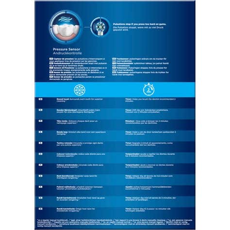 Cepillo de dientes eléctrico, diseñado con un cabezal redondo. Proporciona limpieza y cuidado de encías. Dispone de un cabezal redondeado que combina cerdas ultra finas y lisas con tacto suave, idóneas para ser cuidadoso con las encías pero implacables con la placa.