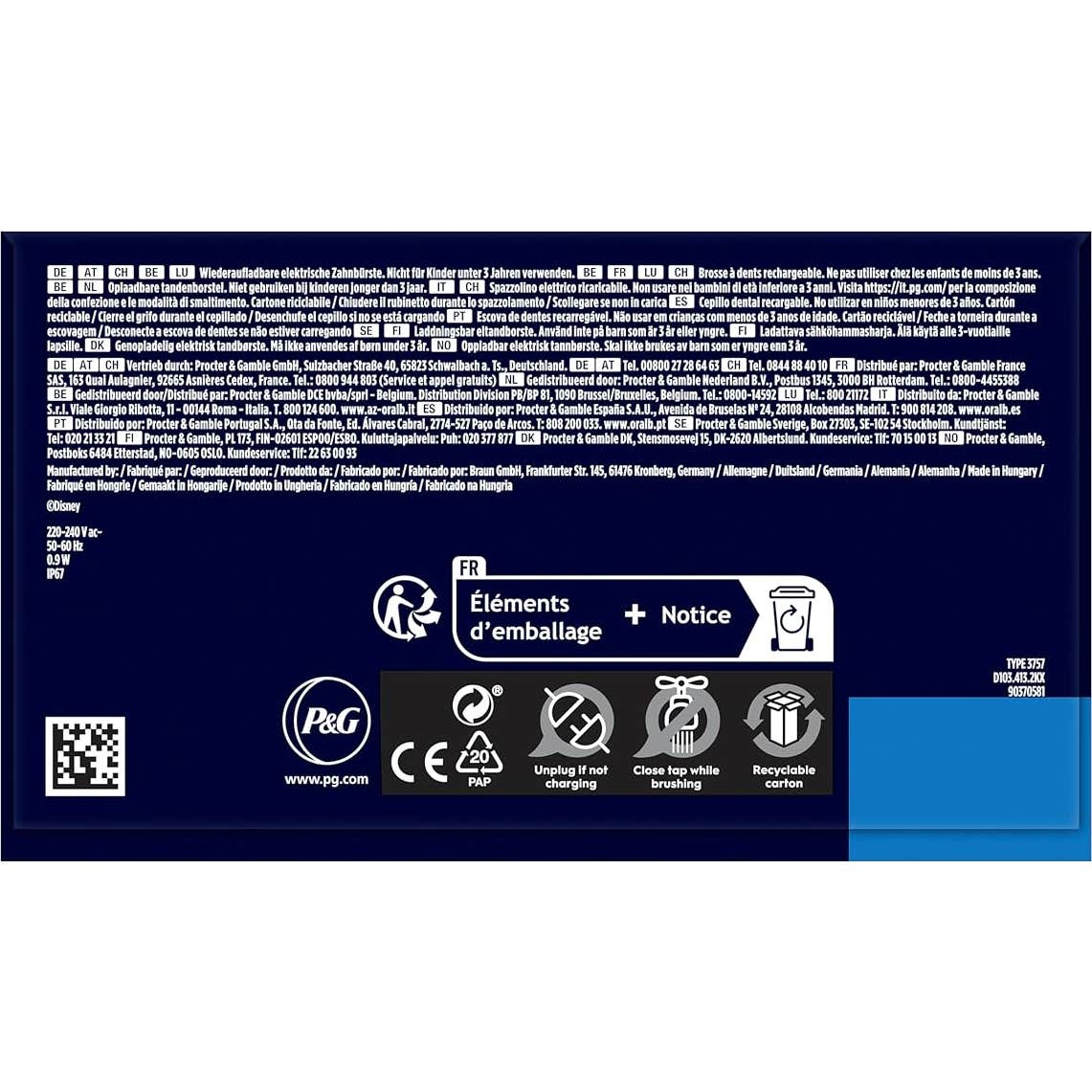 Oral-B Pro Kids Frozen Cepillo Eléctrico con 1 Cabezal es un cepillo de dientes eléctrico para niños a partir de 3 años, con colores e ilustraciones de Frozen.