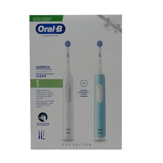 Oral-B Professional Clean 1 Escova Eléctrica Duo Set Blanco Azul es un dispositivo diseñado para optimizar tu higiene bucal. Este modelo cuenta con: