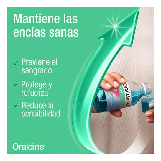 Pack de 2 botellas de colutorio especial para encías de la marca Oraldine. Su fórmula con hexetidina ayuda a fortalecer la encías débiles, a prevenir los problemas derivados como el sangrado o el dolor y deja un aliento fresco y agradable con un uso constante del producto.
