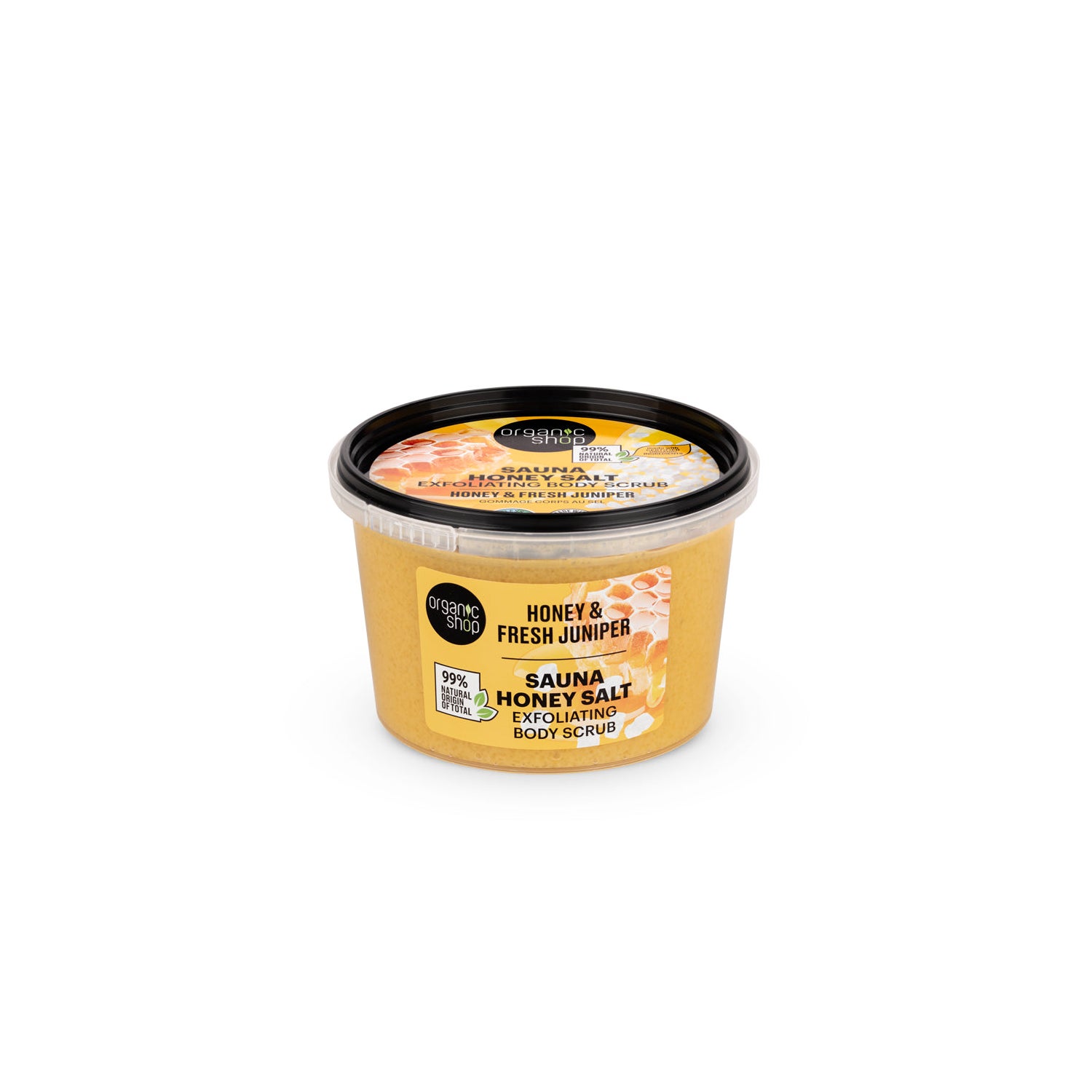 Organic Shop Sauna Honey Salt Exfoliating Body Scrub de 250 ml es un exfoliante corporal que ofrece un tratamiento lujoso para la piel. Su fórmula especial, enriquecida con extracto de miel orgánico, proporciona una exfoliación efectiva, a la vez que hidrata y rejuvenece la dermis.