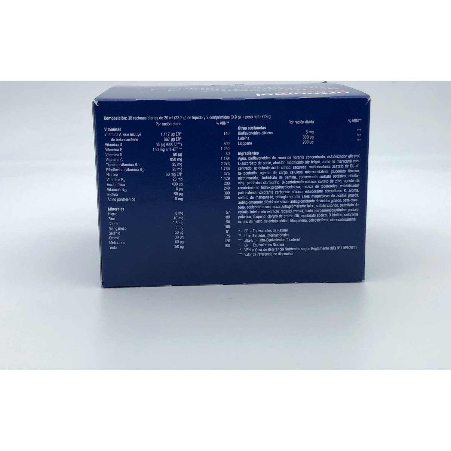 Entre sus ingredientes se encuentran agua, zumo de naranja concentrado con bioflavonoides, L-ascorbato sódico, almidón modificado, zumo de maracuyá concentrado, entre otros componentes beneficiosos para el organismo.