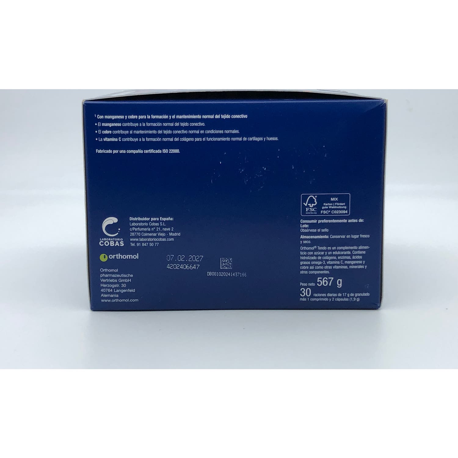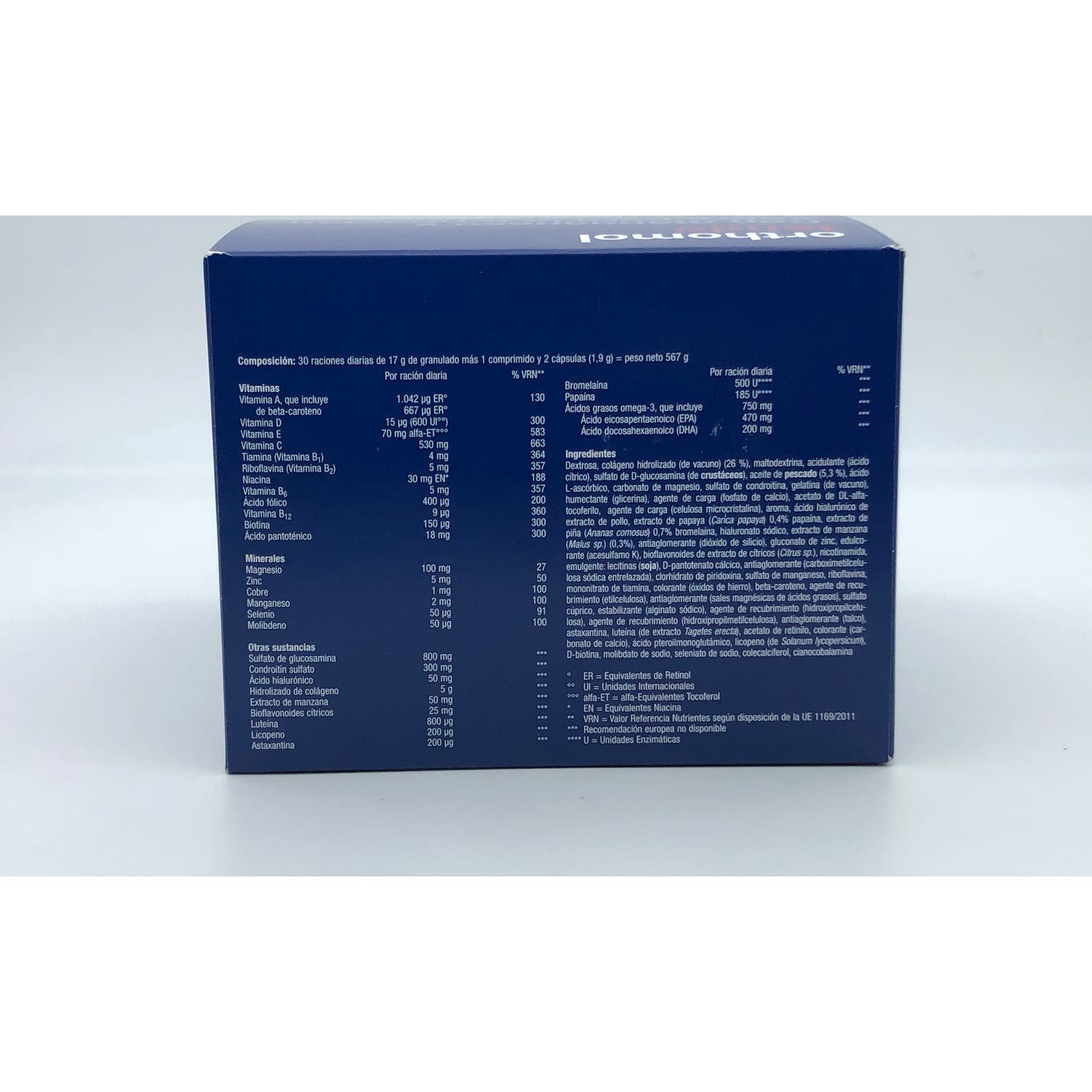 DEXTROSA, HIDROLIZADO DE COLÁGENO, MALTODEXTRINA, ACIDIFICANTE ÁCIDO CÍTRICO, ACEITE DE PESCADO, D-SULFATO DE GLUCOSAMINA, ÁCIDO L-ASCÓRBICO, CARBONATO DE MAGNESIO, SULFATO DE CONDROITINA, GELATINA, SACAROSA,ESTABILIZADOR GOMA ARÁBIGA, FOSFATO CÁLCICO, EXTRACTO DE PIÑA QUE CONTIENE BROMELAINA, VITAMINA E, HUMECTANTE GLICERINA, N-ACETILCISTEÍNA, ESPESANTE CELULOSA MICROCRISTALINA, ALMIDÓN MODIFICADO, ACEITE VEGETAL, EXTRACTO DE PAPAYA QUE CONTIENE PAPAÍNA, AROMA, EXTRACTO DE CÍTRICOS CON BIOFLAVONOIDES, ÁCIDO HIALURÓNICO, EXTRACTO DE MANZANA CON BIOFLAVONOIDES, GLUCONATO DE ZINC, EDULCORANTE ACESULFAMO K, NICOTINAMIDA, D-PANTOTENATO CÁLCICO, ESPESANTE CARBOXIMETILCELULOSA SÓDICA, EMULGENTE LECITINA DE SOJA, COLORANTE DIÓXIDO DE TITANIO, VITAMINA B6 CLORHIDRATO, SULFATO DE MANGANESO, VITAMINA B2, AGENTE DE RECUBRIMIENTO HIDROXIPROPILMETILCELULOSA, VITAMINA B1 MONONITRATO, AGENTE DE RECUBRIMIENTOETILCELULOSA, ANTIAGLOMERANTE TALCO, BETACAROTENO, ANTIAGLOMERANTE SALES MAGNÉSICAS DE ÁCIDOS GRASOS ALIMENTARIOS, SULFATO DE COBRE, ESTABILIZADORALGINATO SÓDICO, ALMIDÓN, EXTRACTO DE TOMATE ENRIQUECIDO CON LICOPENO, COLORANTE ÓXIDO FÉRRICO, LUTEÍNA, EMULGENTE SUCROÉSTERES DE ÁCIDOS GRASOSALIMENTARIOS, VITAMINA A ACETATO, ÁCIDO FÓLICO, ASTAXANTINA, D-BIOTINA, MOLIBDATO SÓDICO, SELENIATO SÓDICO, VITAMINA B12, VITAMINA D3
