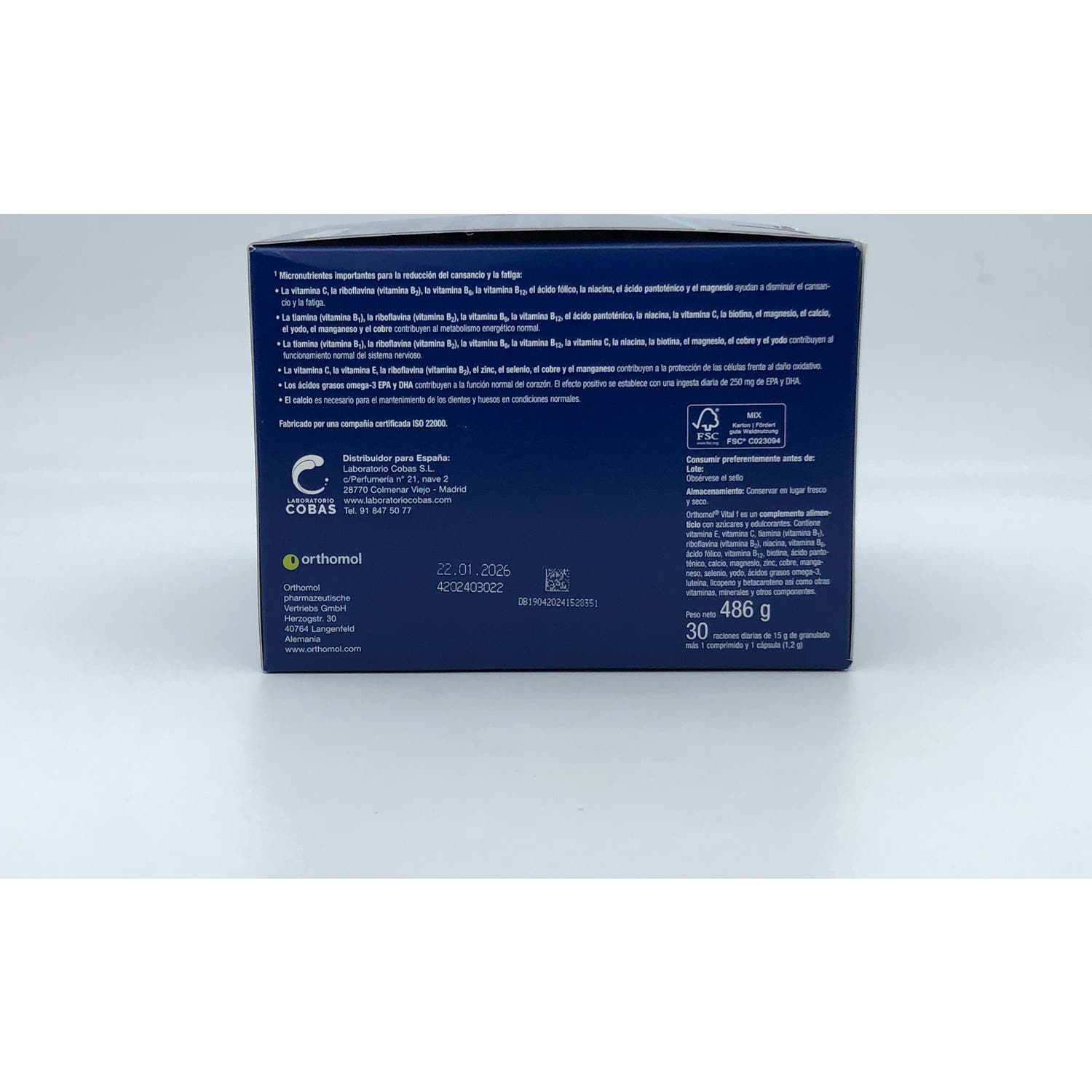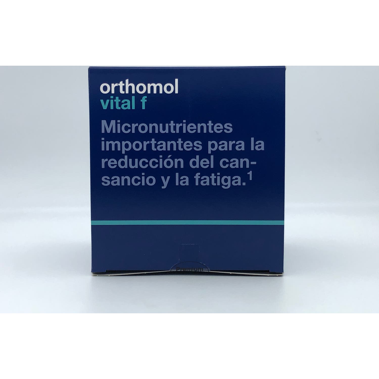 Orthomol Vital F 30 Sobres es un complemento alimenticio formulado a base de vitaminas, minerales y micronutrientes importantes para el sistema nervioso y el metabolismo energético. Por ello, está especialmente indicado para aquellas personas que necesiten un aporte extra de energía como en caso de fatiga crónica, síndrome de burn-out y trastornos metabólicos unidos al estrés.