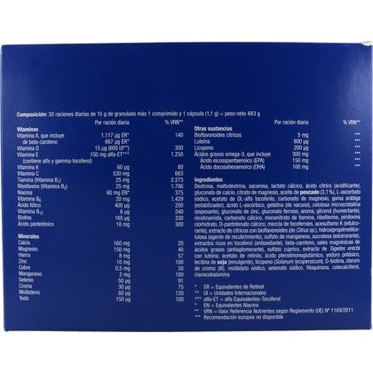 Complemento alimenticio a base de micronutrientes específicos para el sistema nervioso y el estrés oxidativo. Compuesto por:
