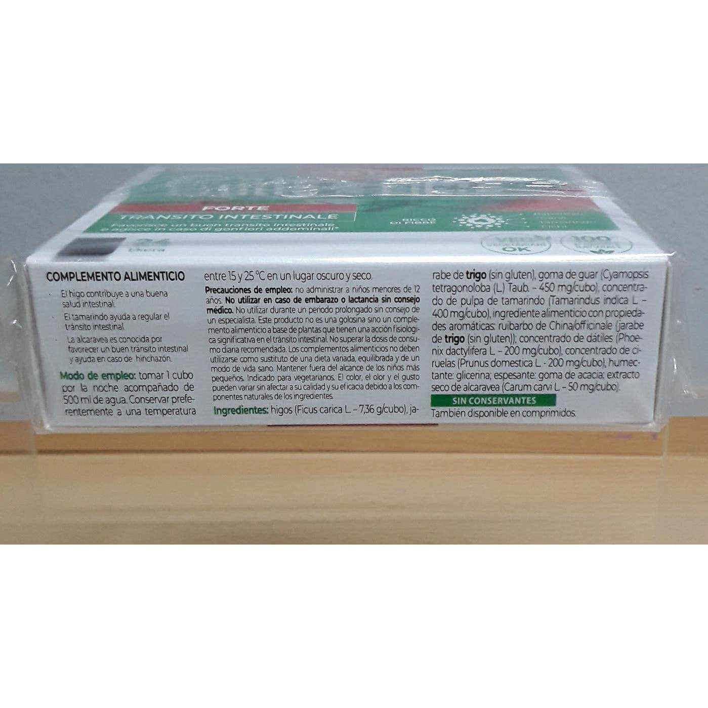 Frutas&Fibras Forte Tránsito Intestinal Acción Rápida 24cubos es un complemento alimenticio a base de Ruibarbo, Alcaravea, tamarindo e higo que ayuda a facilitar el tránsito intestinal de forma rápida (8h).
