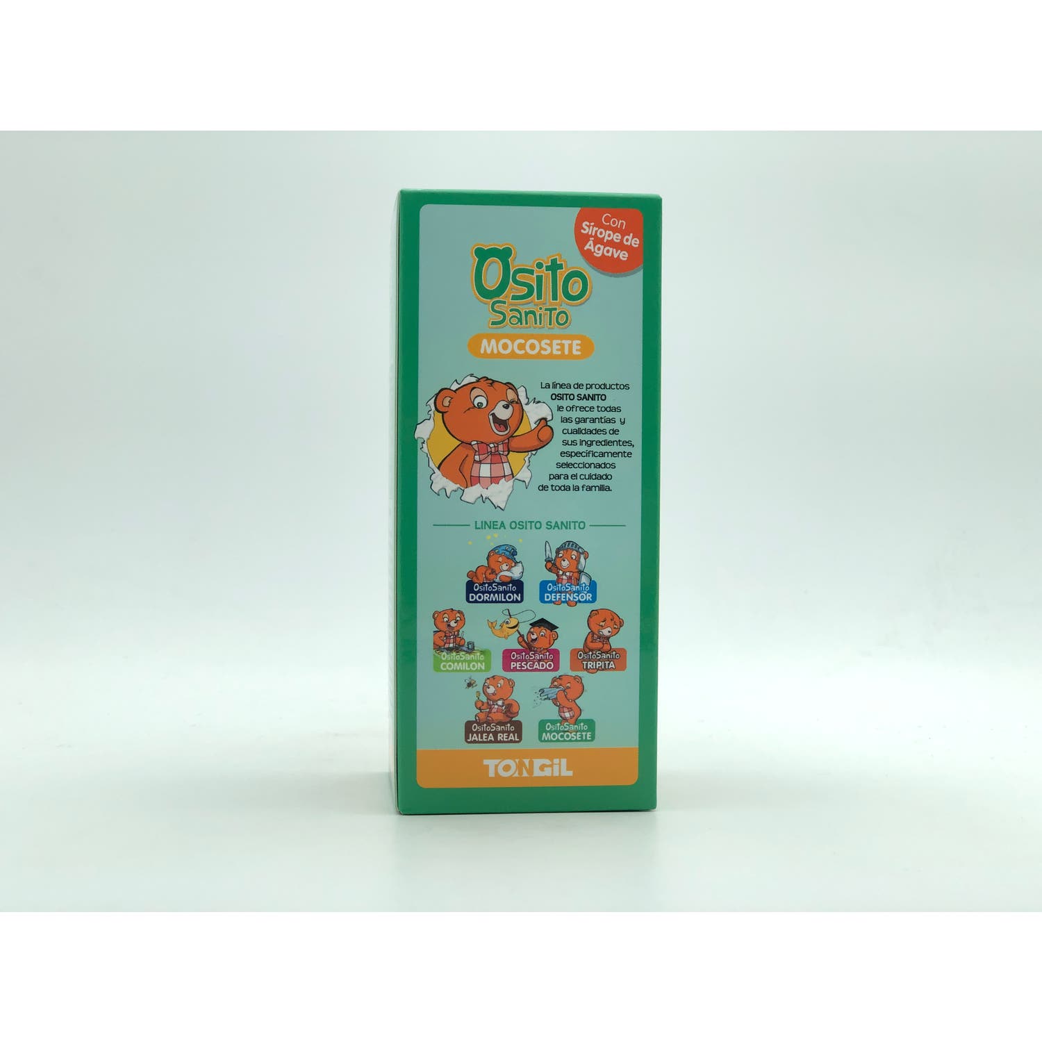 Osito Sanito Mocosete Tongil 150ml es un complemento alimenticio elaborado a base de malvavisco, romero, naranja amarga, escaramujo, ulmaria, vitamina B6 y C que ayuda a alivar la garganta y mejorar el catarro de los niños.