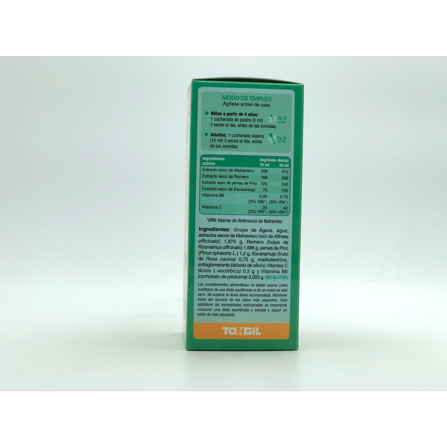 Extracto seco de Malvavisco (raíz de Althaea officinalis) 206 mg 412 mg Extracto seco de Romero (sumidad florida de Rosmarinus officinalis) 168 mg 336 mg E.S. de Yemas de pino (Pinus sylvestris L) 120 mg 240 mg E.S. de Escaramujo (fruto de Rosa canina) 75 mg 150 mg Vitamina B6 (clorhidrato de piridoxina) 0,35 mg (25% VRN*) 0,70 mg (50% VRN*)
