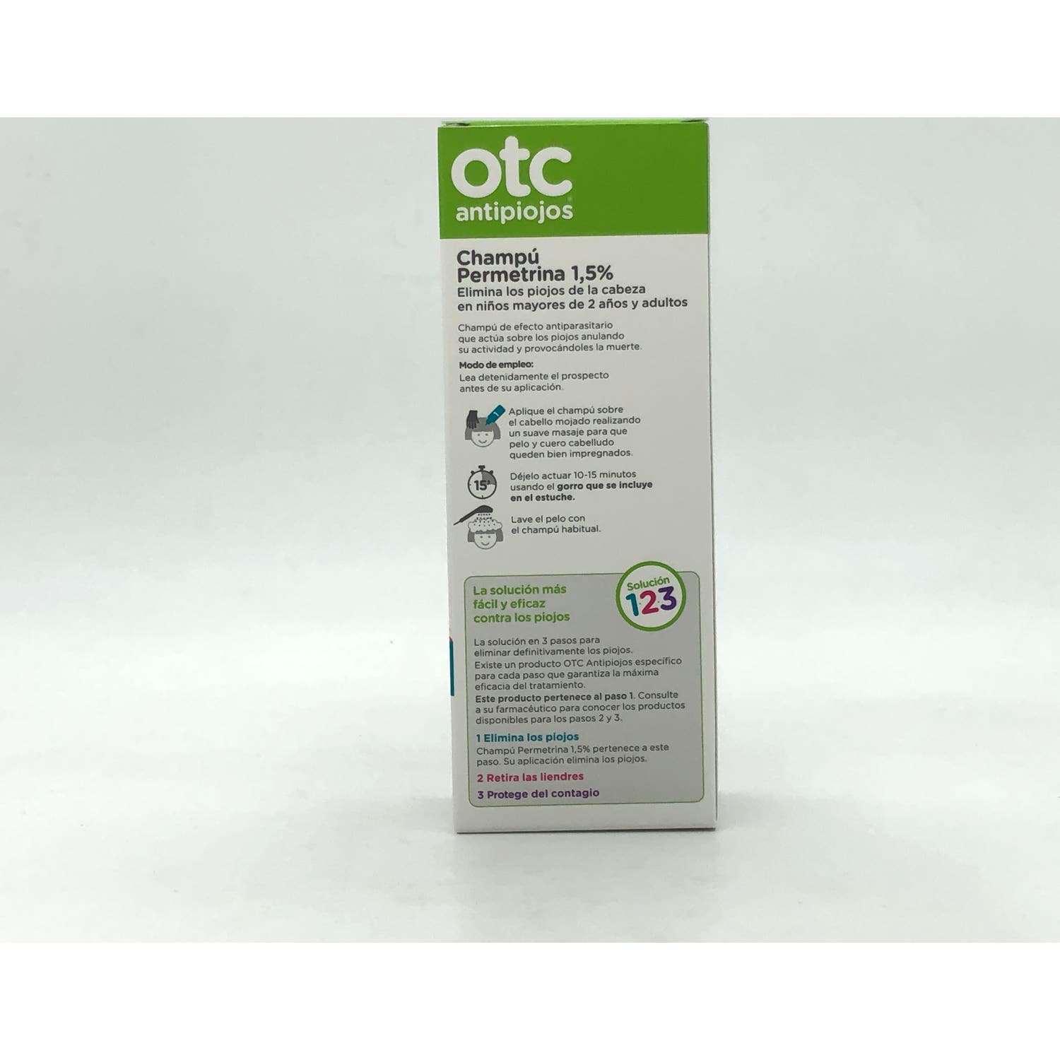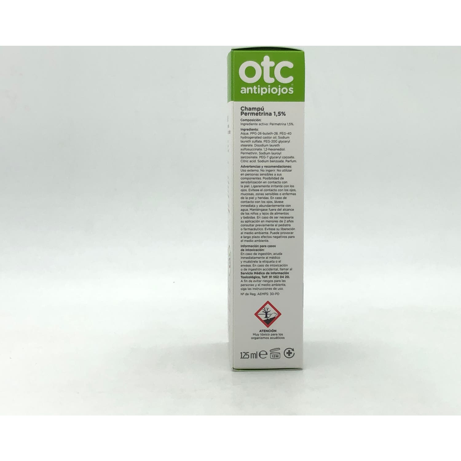 OTC Antipiojos Elimina Champú Permetrina 1,5% 125ml es un champú con efecto antiparasitario que ayuda a eliminar la presencia de piojos y liendres en el cuero cabelludo. Sirve como complemento al tratamiento con OTC Antipiojos Champú Permetrina 1,5%.