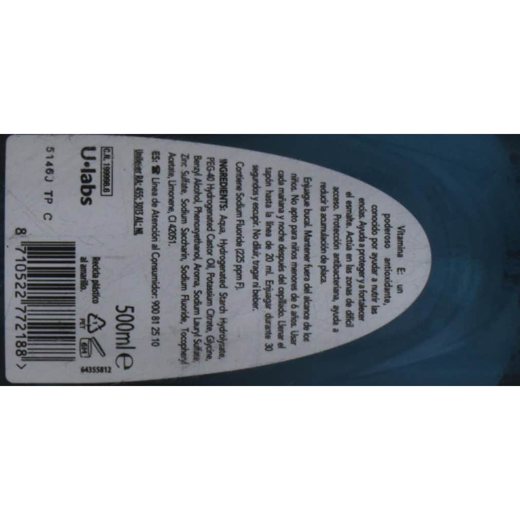 Aqua, Hydrogenated Starch Hydrolysate, PEG-40 Hydrogenated Castor Oil, Potassium Citrate, Glycine, Benzyl Alcohol, Phenoxyethanol, Aroma, Sodium Lauryl Sulfate, Zinc Sulfate, Sodium Fluoride, Sodium Saccharin, Limonene, Tocopheryl Acetate, CI 42051.