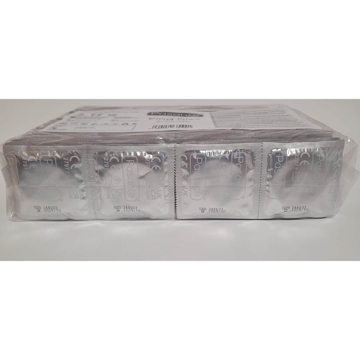 Caja con 144 unidades de preservativos extra largos elaborados a base de látex que ofrecen una protección segura ante las patologías de transmisión sexual.