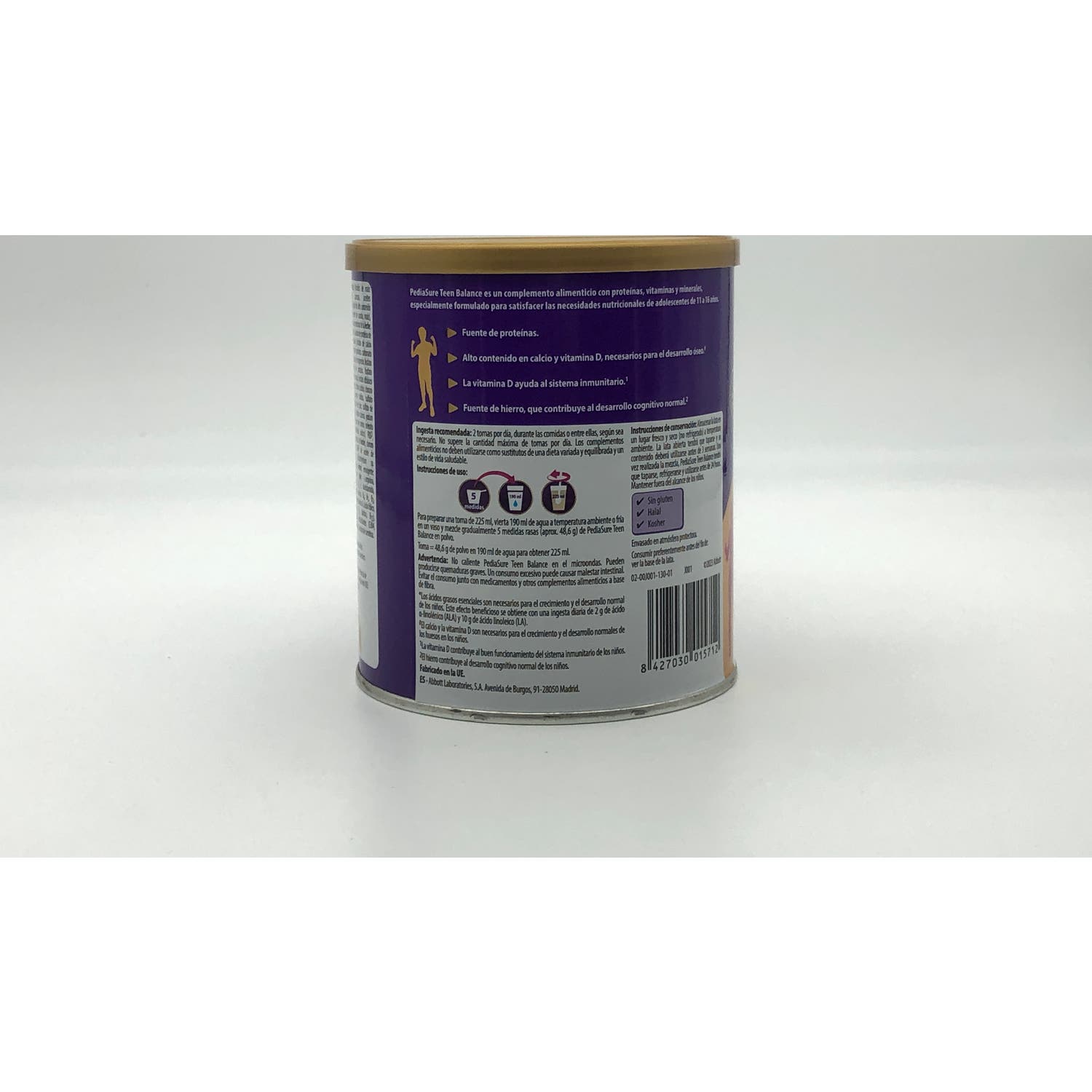 Instrucciones de uso: Para preparar una toma de 225 ml, vierta 190 ml de agua a temperatura ambiente o fría en un vaso y mezcle gradualmente 5 medidas rasas (aprox. 49,1 g) de PediaSure Teen Balance en polvo. Toma = 49,1 g de polvo en 190 ml de agua para obtener 225 ml. Se puede calentar pero no por encima de los 35ºC para mantener las propiedades nutricionales.