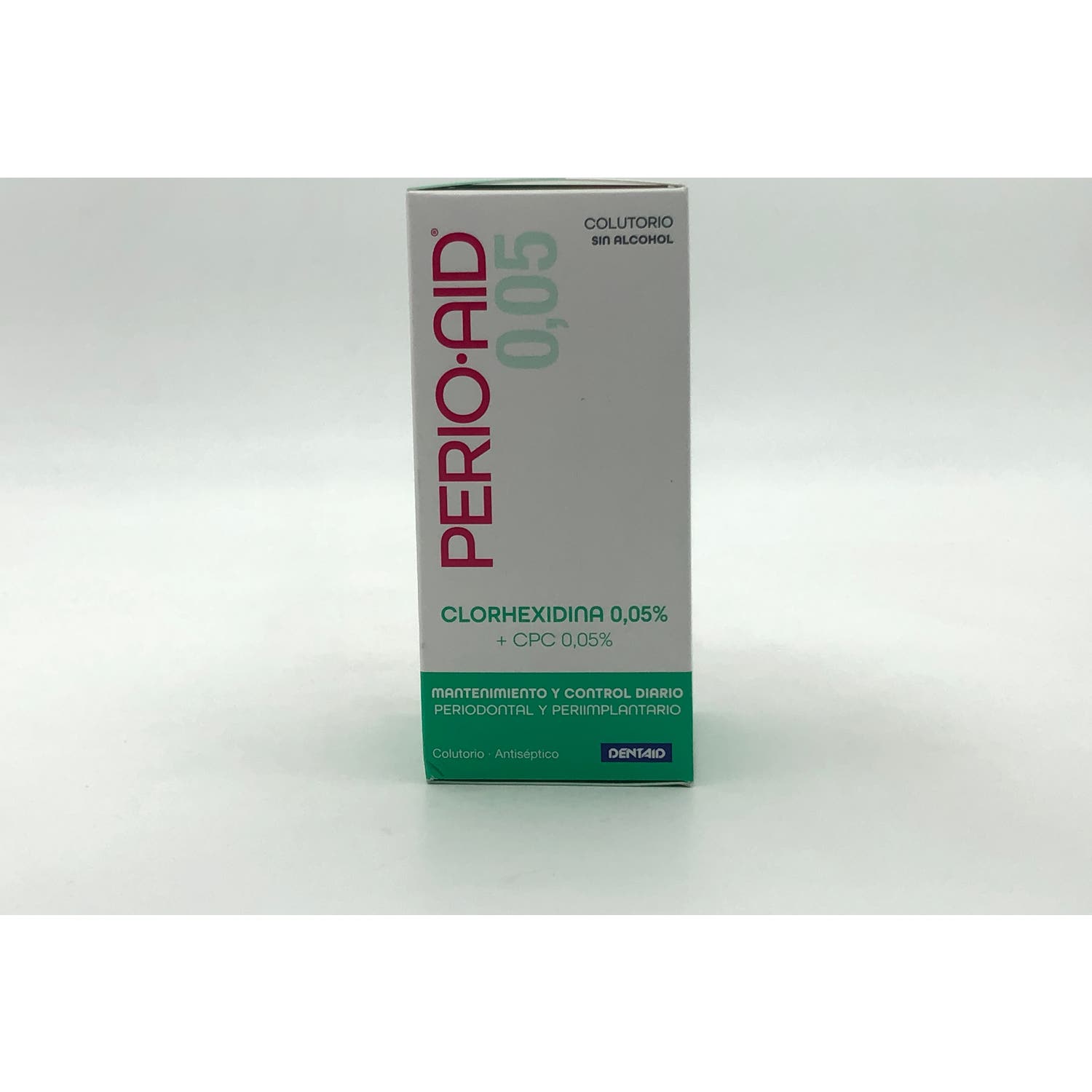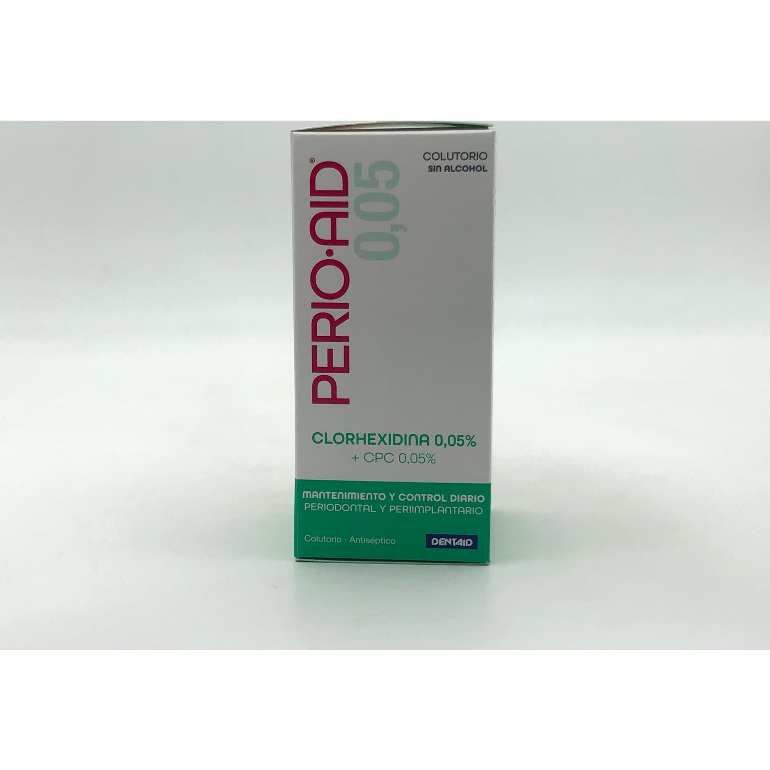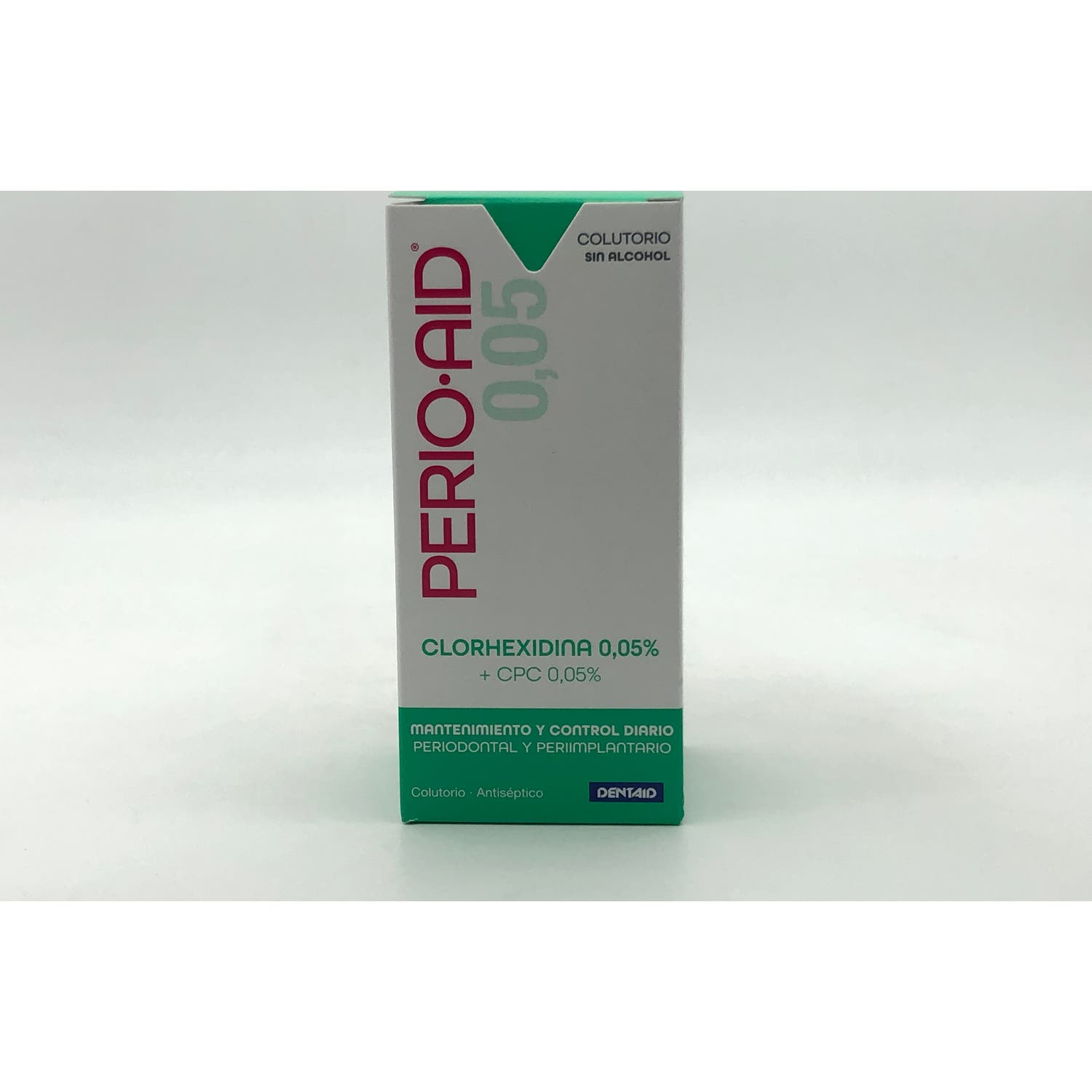Perio·Aid Clorhexidina 0,05% + CPC 0,05% Colutorio Sin Alcohol 150ml es un enjuague bucal antiséptico de uso diario que ayuda para cuidar los dientes y encías.