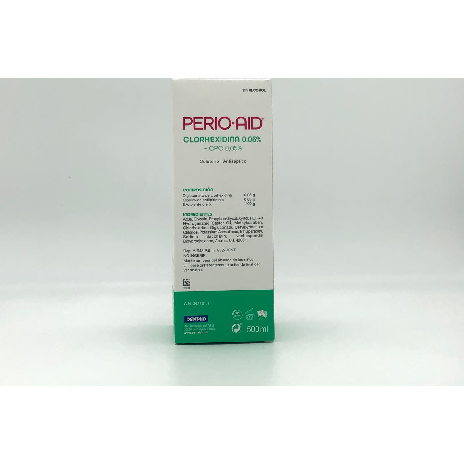 Perio·Aid Clorhexidina 0,05% + CPC 0,05% Mantenimiento y Control 500ml es un colutorio sin alcohol antiséptico de uso diario que ayuda para cuidar los dientes y encías.