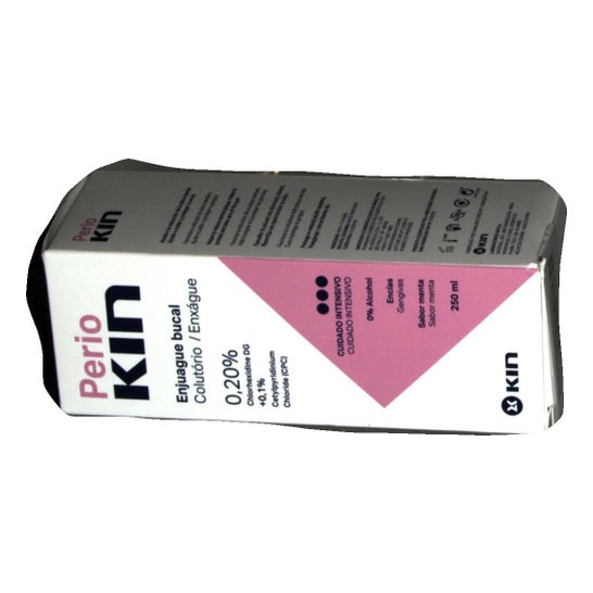 Perio-Kin enjuague actúa directamente sobre la cavidad oral, liberando clorhexidina en la boca y actuando sobre la placa bacteriana. La clorhexidina es conocida por su propiedad antimicrobiana, que actúa liberándose lentamente y atacando las bacterias presentes en la boca.