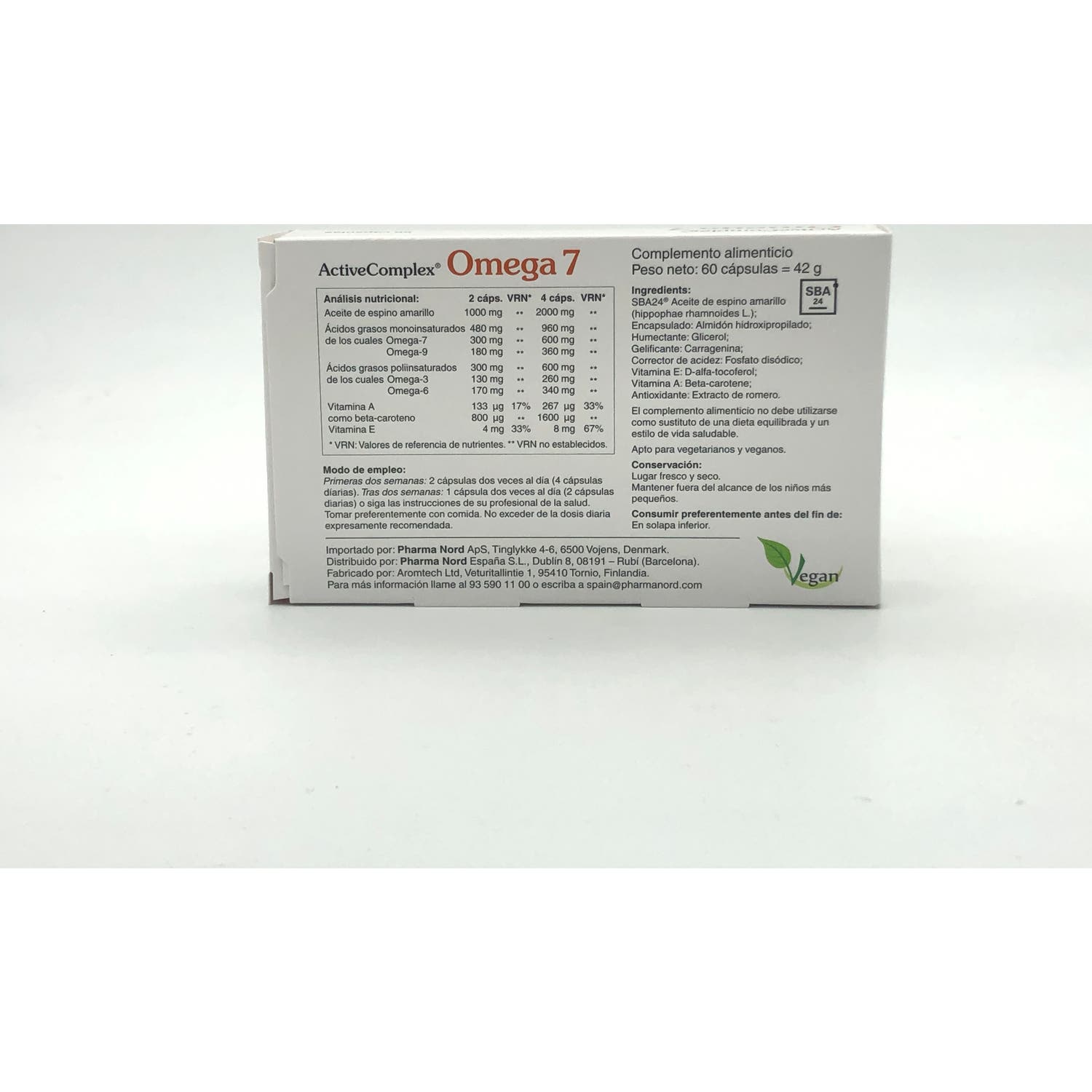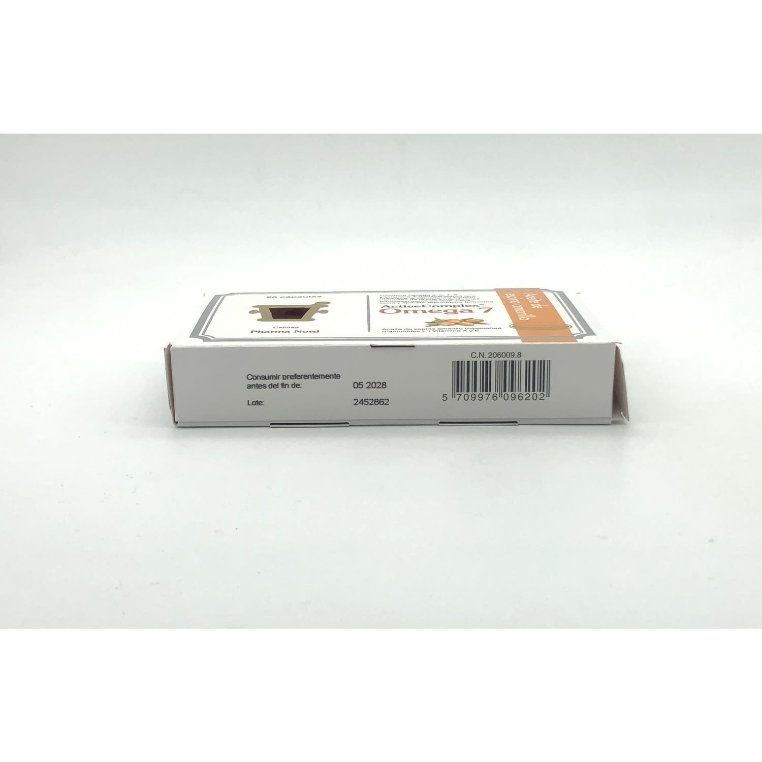 Complemento alimenticio elaborado con aceite de espino amarillo. Es fuente natural de omegas 3, 6, 7 y 9.