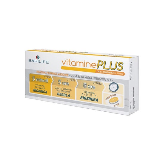Complemento alimenticio en formato comprimido indicado para aquellas personas con d déficit de vitaminas y sales minerales. Su formato son comprimidos de triple capa, que garantizan la liberación de sus propiedades en las distintas fases del día con la toma de un único comprimido.