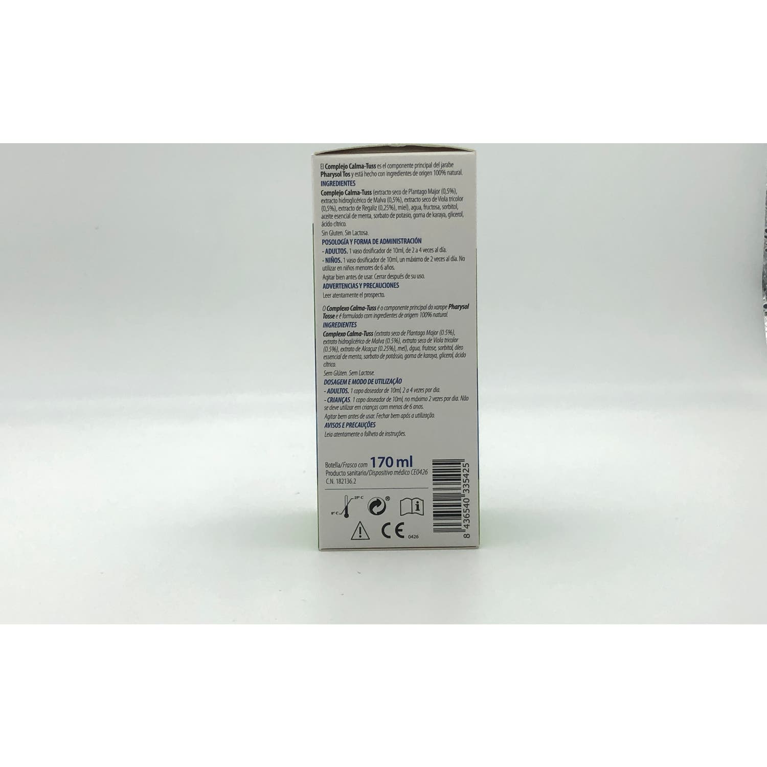 Pharysol Tos jarabe 170ml es un jarabe formulado para calmar la tos seca o tos productiva. Indicado para personas con la garganta afectada por las bajas temperaturas, especialmente en casos donde se presente dolor e irritación. Elaborado con ingredientes 100% naturales, ejerce una acción expectorante que ayuda a expulsar los mocos y combate la tos.
