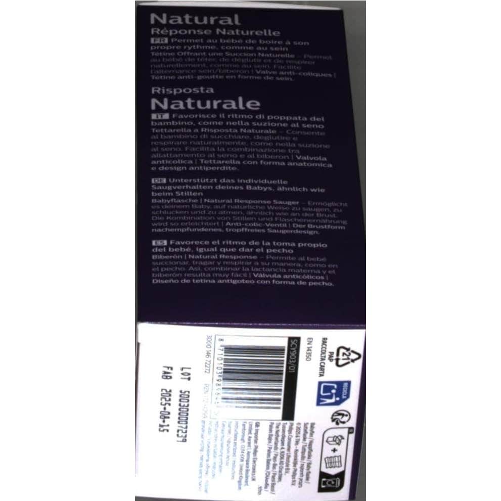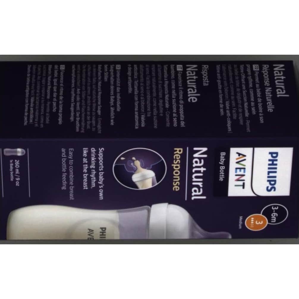 Philips Avent Biberón SCY903/01 Natural Response 260ml *El color y diseño del producto pueden variar según la disponibilidad.