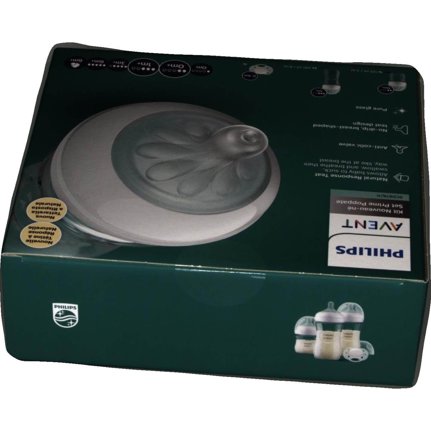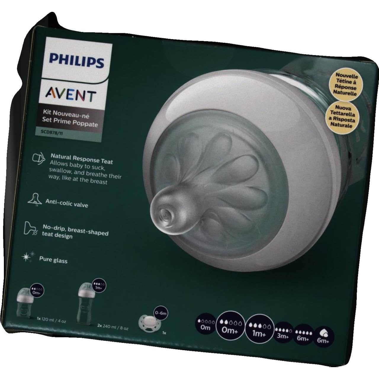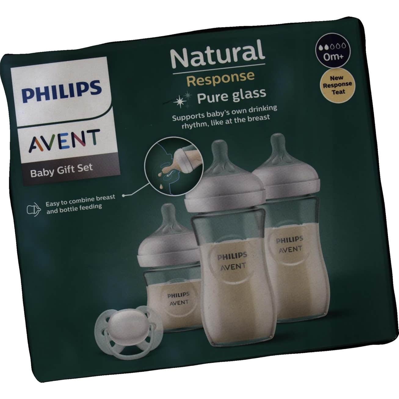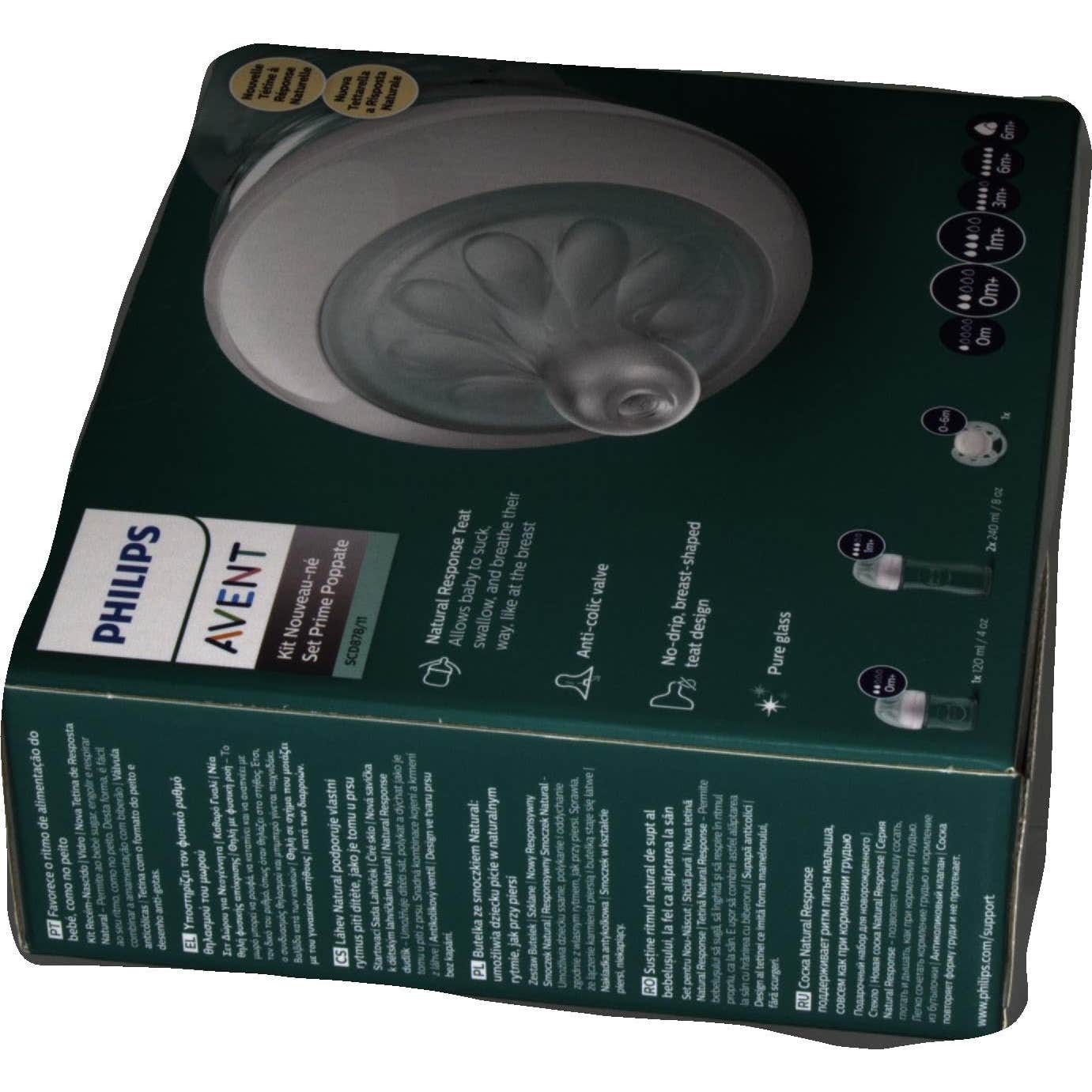 Philips Avent Set Natural Response Pure Glass SCD878/11 es un set de cuidado para el bebé que contiene 3 biberones de cristal Avent Natural Response de 120-240ml y un chupete ultrasoft indicado para bebés a partir de los 0 meses.