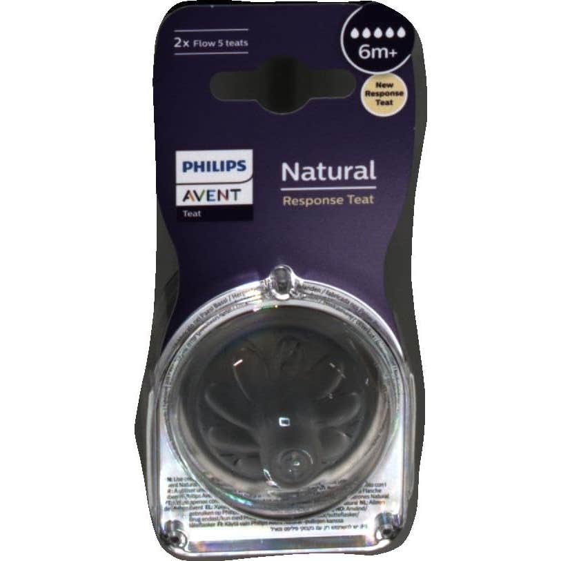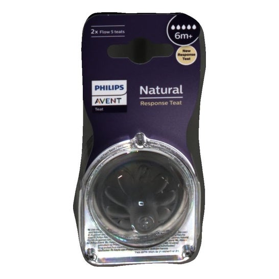 Philips Avent Tetina Natural Birth Response +6M T5 2uds es un set de 2 tetinas indicadas para infantes a partir de los 6 meses de edad. Estas tetinas permiten succionar, tragar y respirar adaptándose a su ritmo natural. Están especialmente diseñadas para evitar cólicos, gracias a su válvula que controla la velocidad de flujo. No contienen BPA.