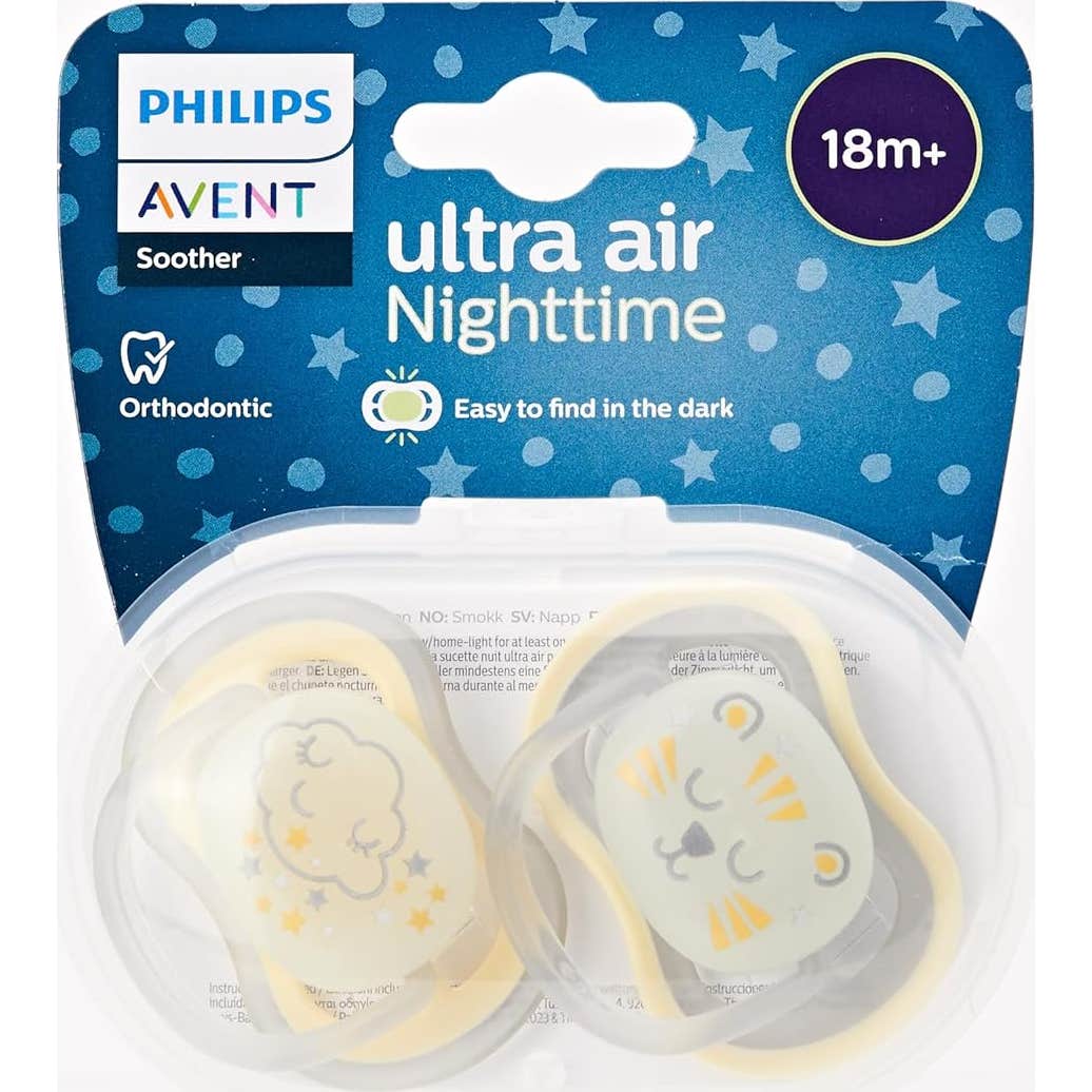 Con orificios de ventilación extragrandes para mantener la piel sensible suave y seca, y un chupon extra firme para dientes y encías en crecimiento, los chupetes Ultra Air de Philips Avent son ideales para pieles sensibles.