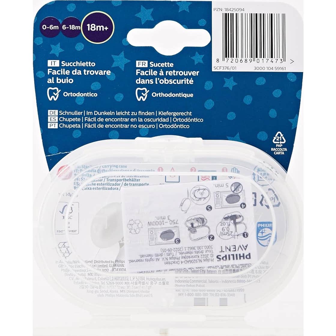 - La caja de transporte de los chupetes puede usarse para esterilizarlos en el microondas.