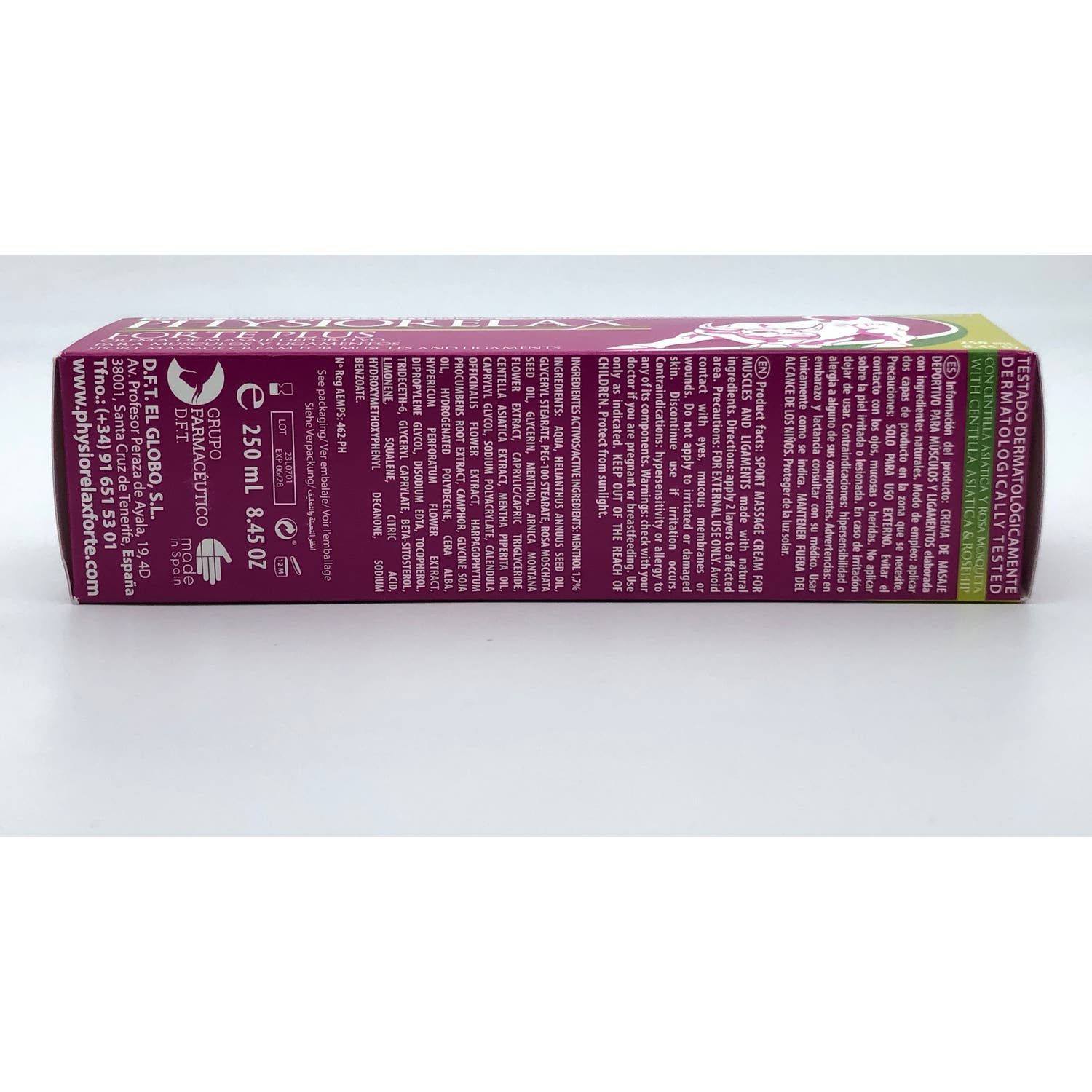 Physiorelax® Forte 250ml es una crema de masaje que te ayudará a destensar y relajar los músculos después de un ejercicio físico muy exigente. Gracias a su formulación rica en agua termal y rosa mosqueta, esta crema aportará sales minerales y propiedades emolientes e hidratantes al cutis.