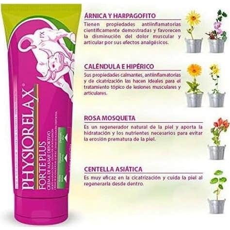 Physiorelax® Forte es una crema de masaje que te ayudará a destensar y relajar los músculos después de un ejercicio físico muy exigente. Gracias a su formulación rica en agua termal y rosa mosqueta, esta crema aportará sales minerales y propiedades emolientes e hidratantes al cutis.